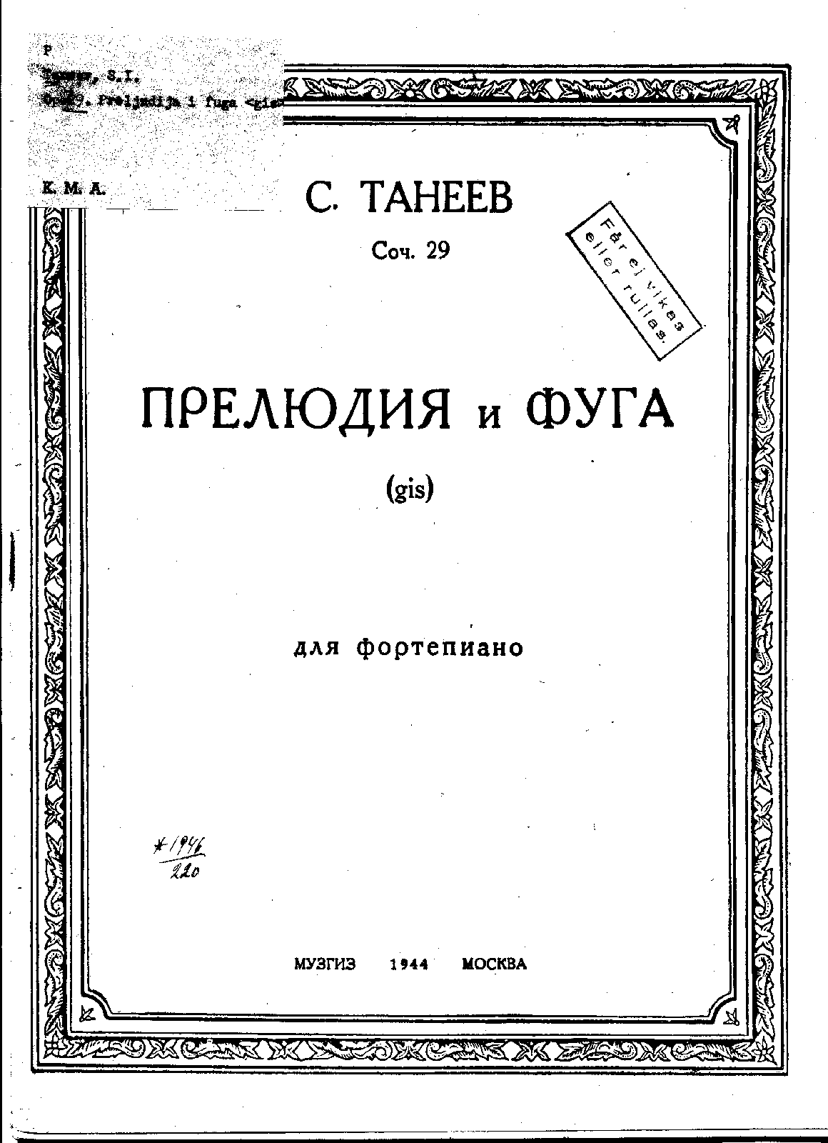| First Publication. | 1914 – Berlin: Russischer Musikverlag. 1914 – Berlin: Russischer Musikverlag. Arrangement for 2 pianos. |