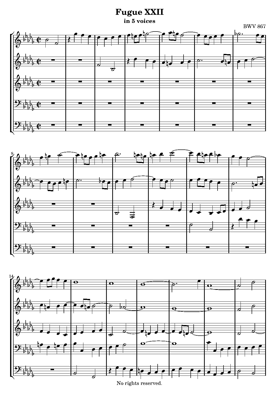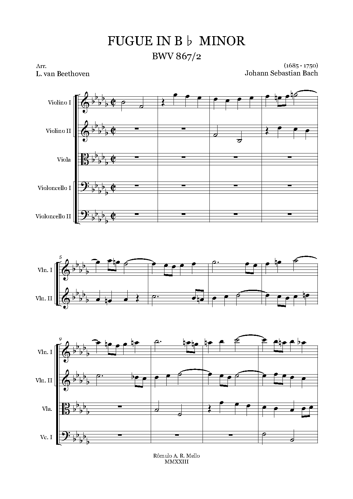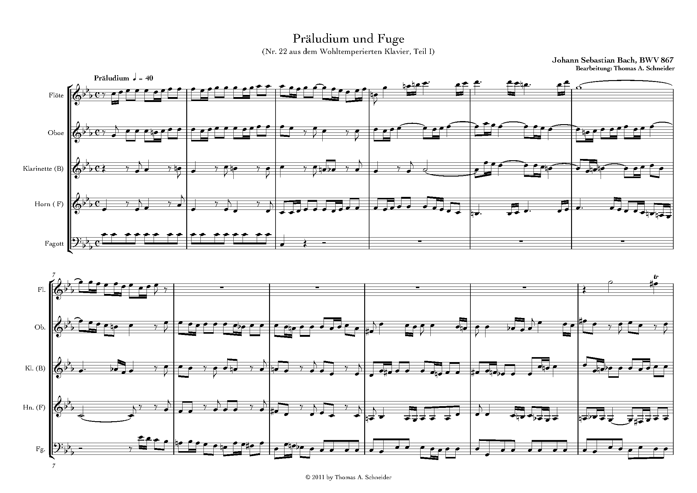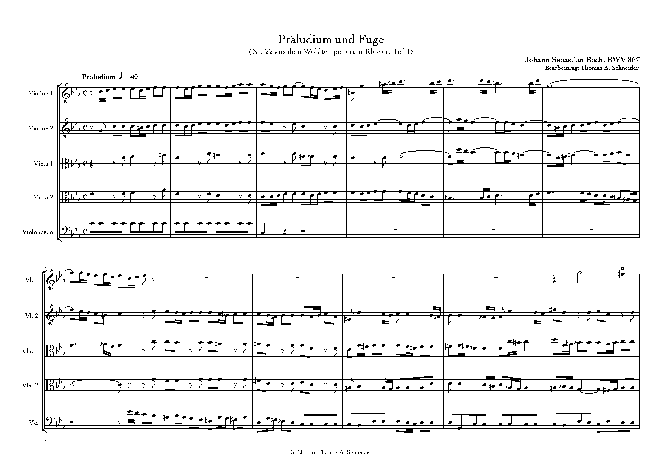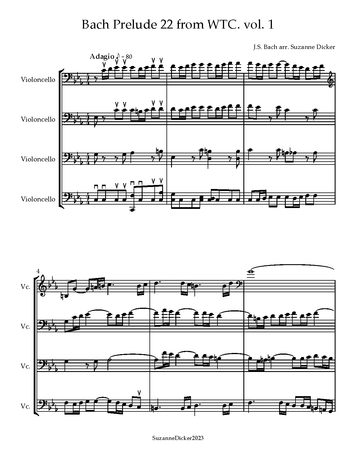 Misc. Notes Prelude 22 from WTC vol. 1 transposed to C minor for 4 cellos