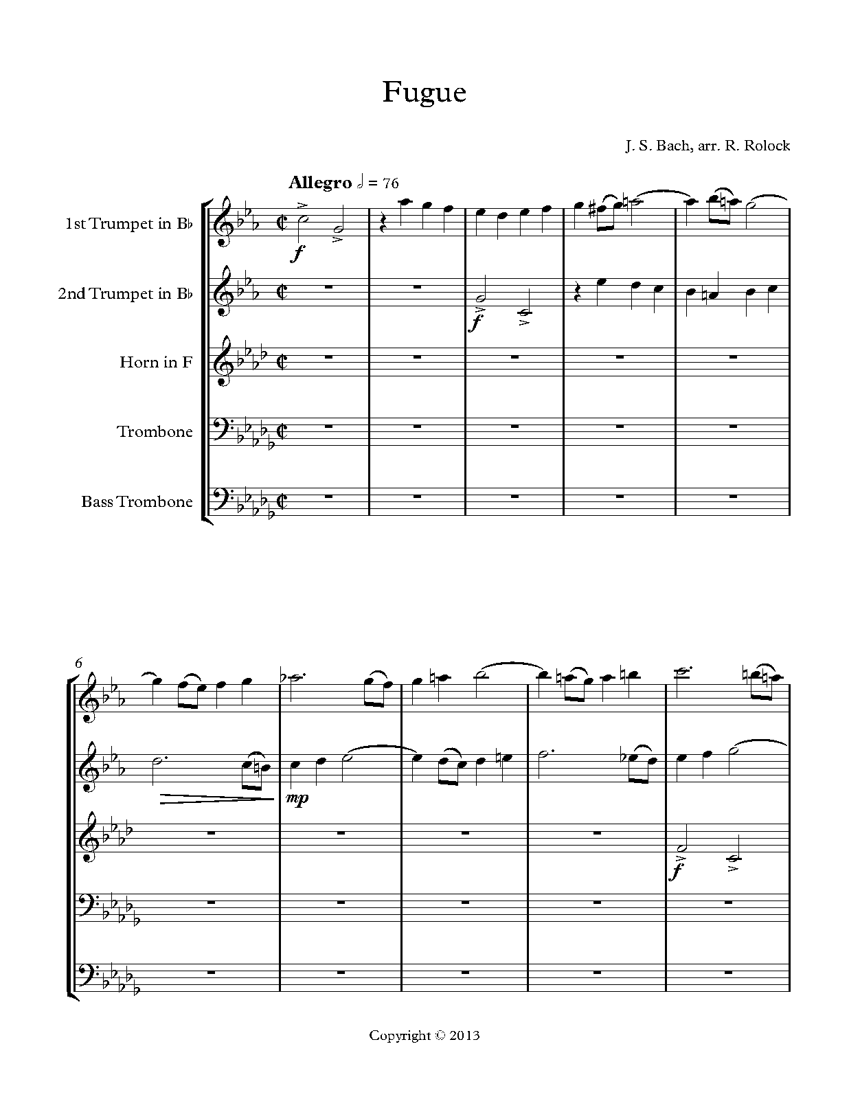 For Horn, 2 Trumpets, Trombone and Bass Trombone (Rolock)