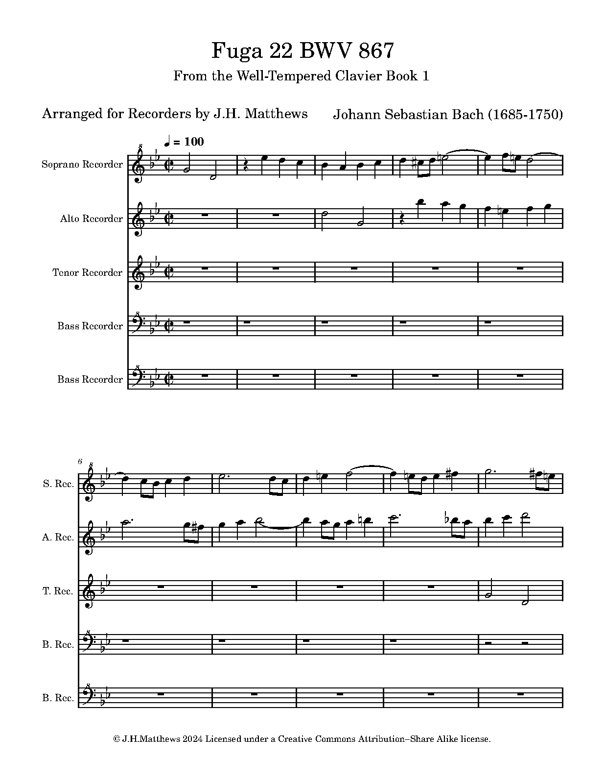 Year/Date of CompositionY/D of Comp. 1722 in Das wohltemperierte Klavier I, BWV 846-869 (No.22)