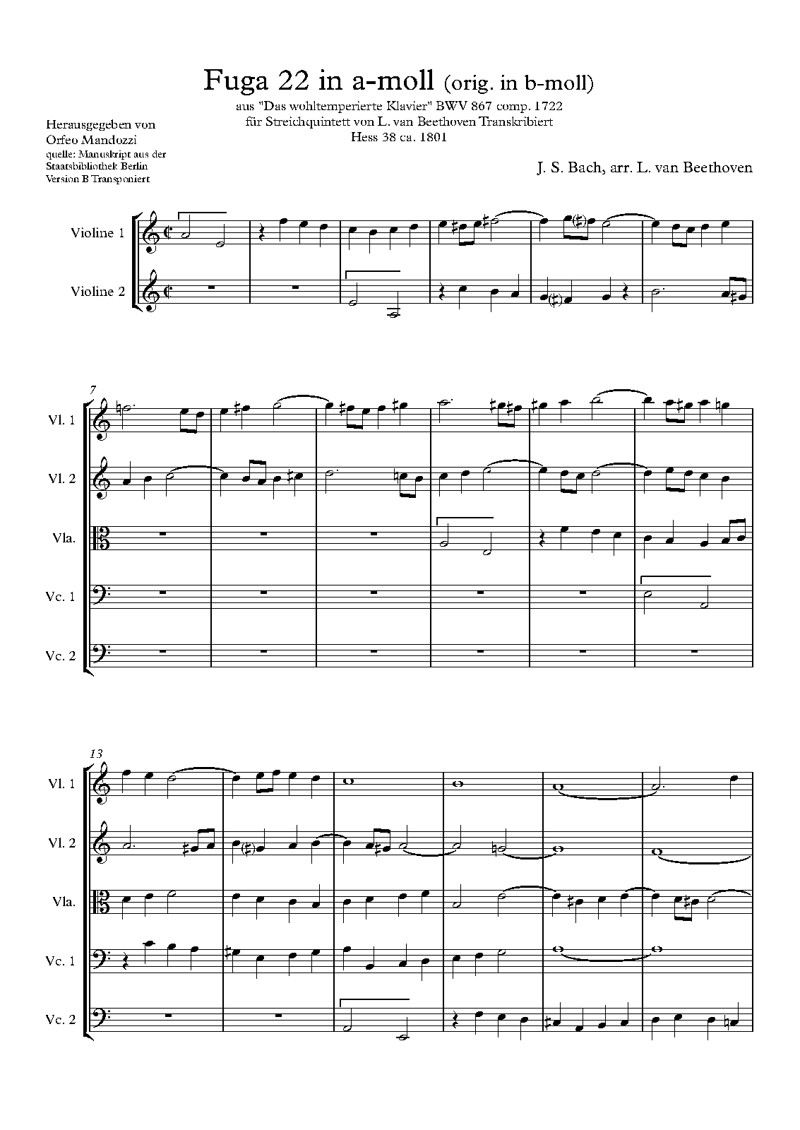 Opus/Catalogue NumberOp./Cat. No. BWV 867 ; BC L 101