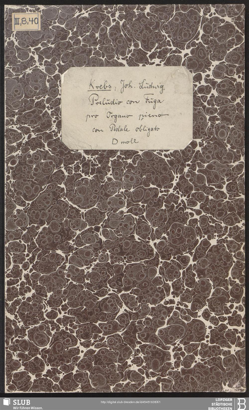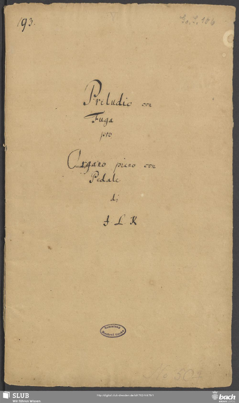 Alternative. Title Præludio con Fuga pro Organo pieno con Pedale di J. L. K.; Præludio con Fuga pro Organo pieno con Pedale obligato da Giovanni Lodovico Krebs.