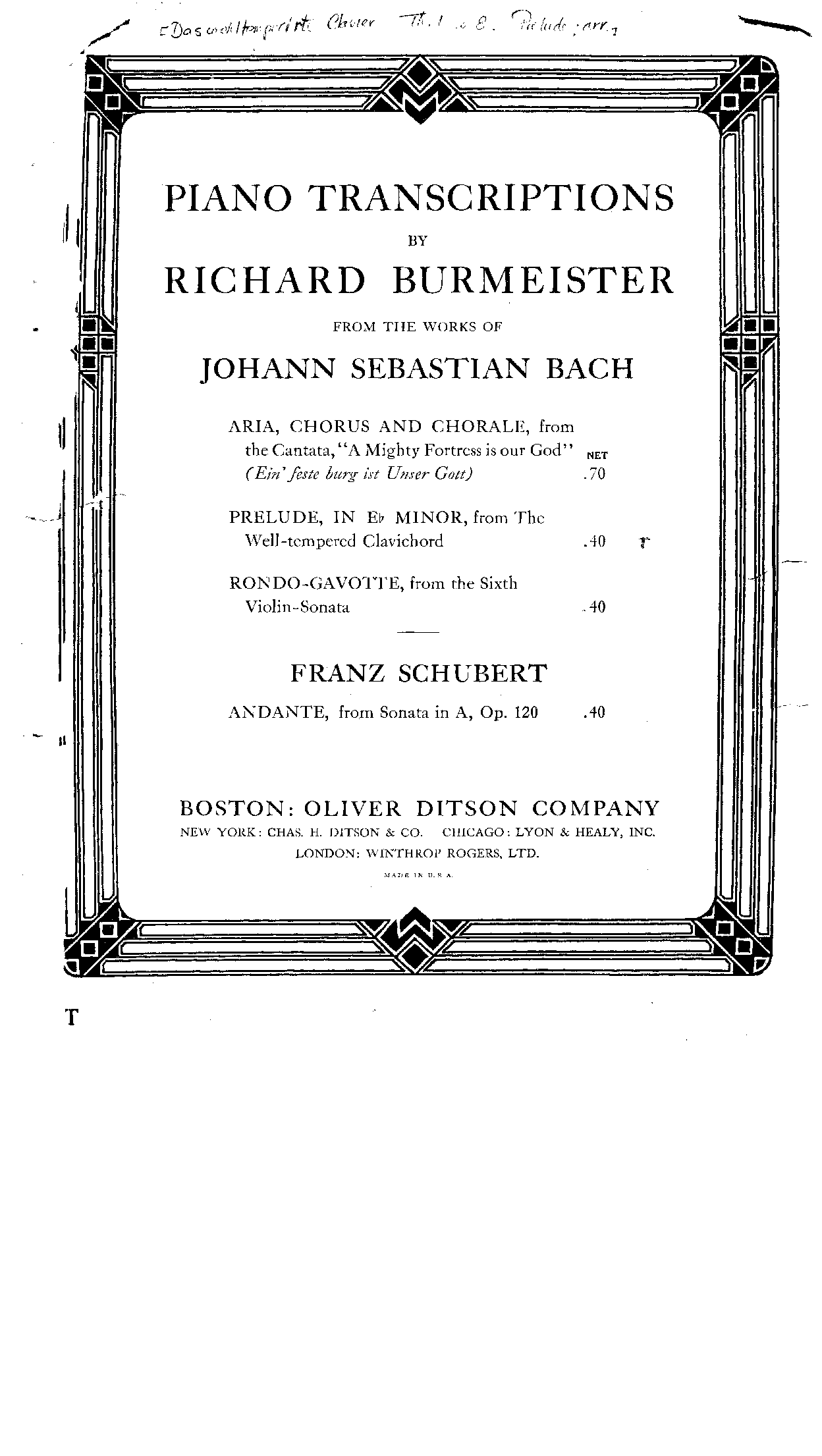 Misc. Notes Transposed down to D minor for European organs with shorter pedalboard