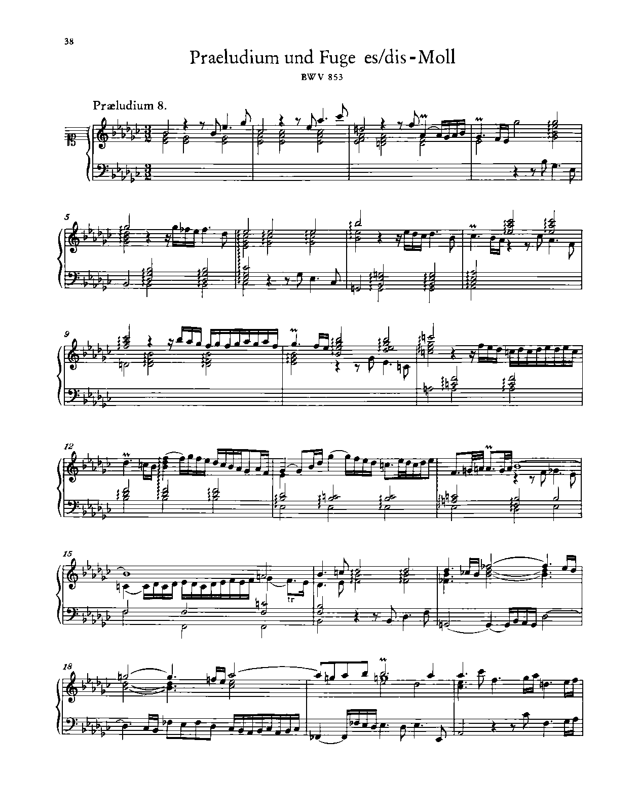 Name Translations Präludium und Fuge es/dis-Moll BWV 853; Prelude in E-flat minor and Fugue in D-sharp minor, BWV 853; Prélude et fugue en mi bémol mineur (BWV 853); Прелюдия ми-бемоль минор и фуга ре-диез мажор, BWV 853