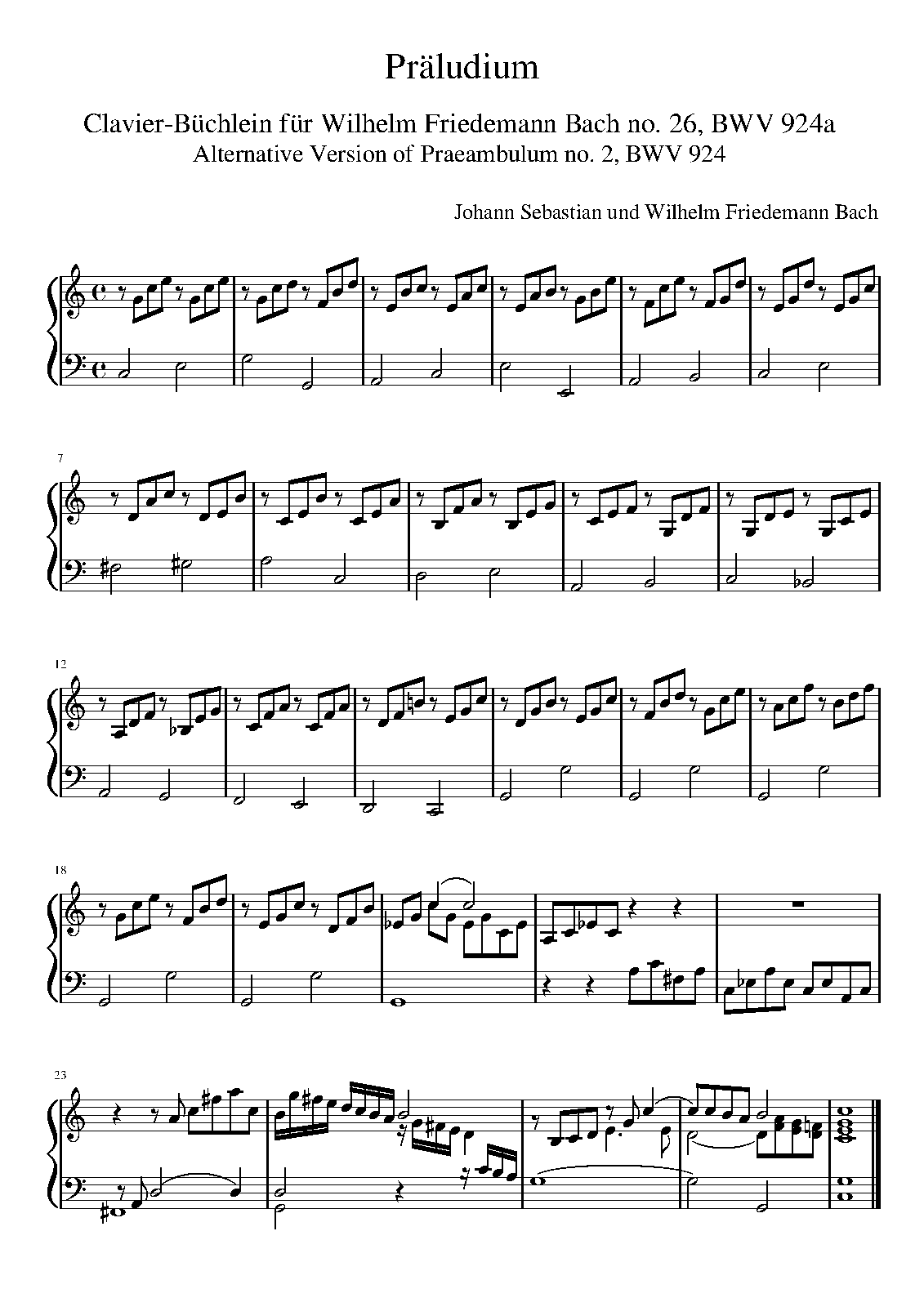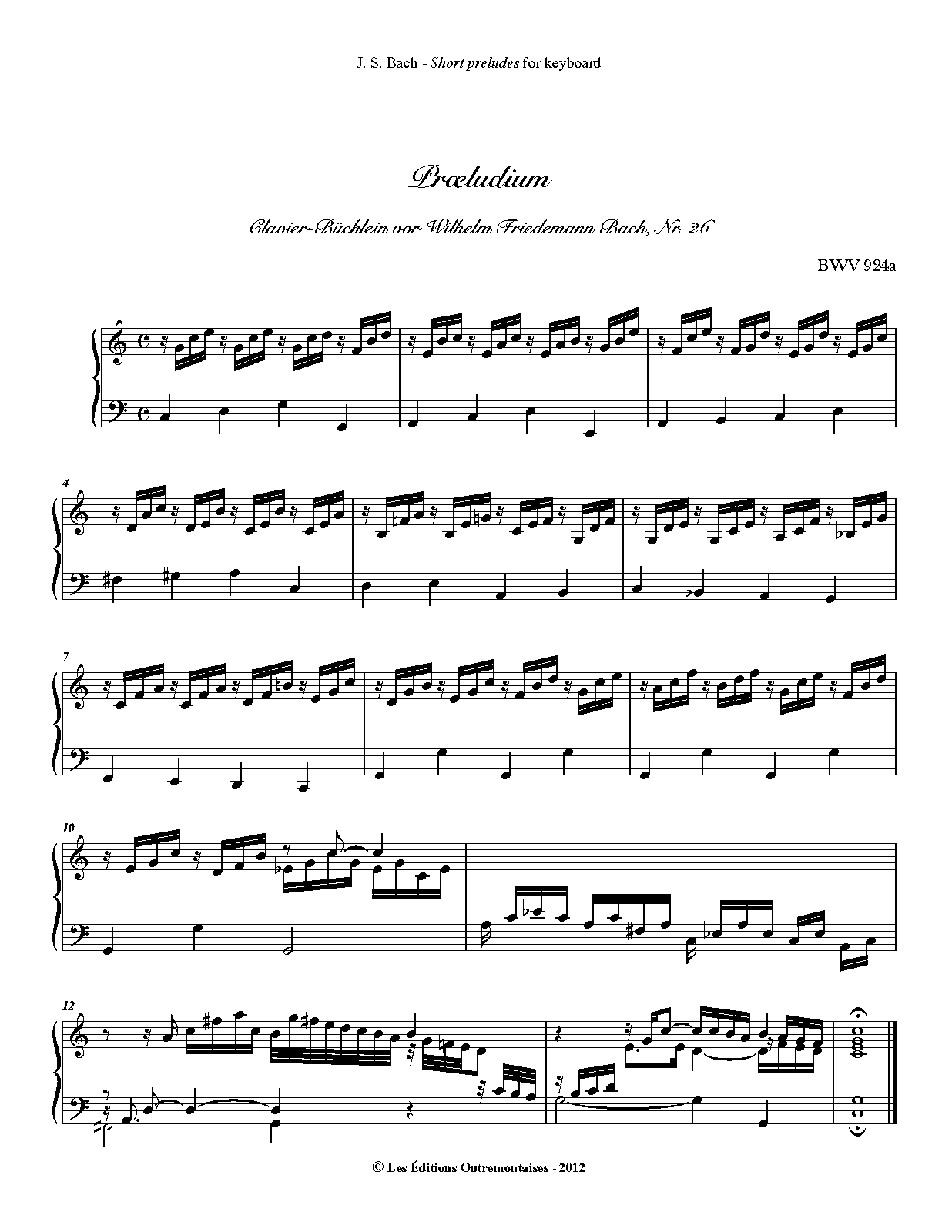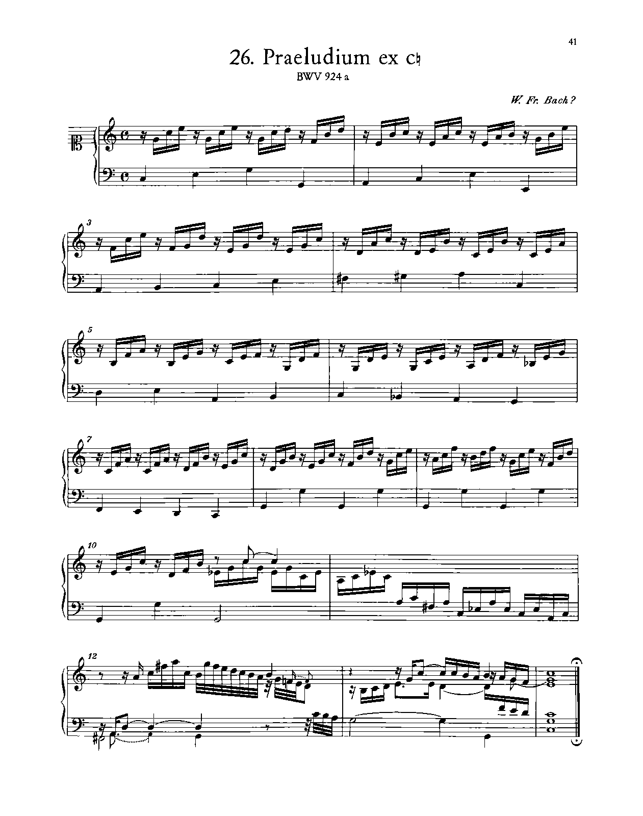 This work was formerly attributed to Johann Sebastian Bach as BWV 924a