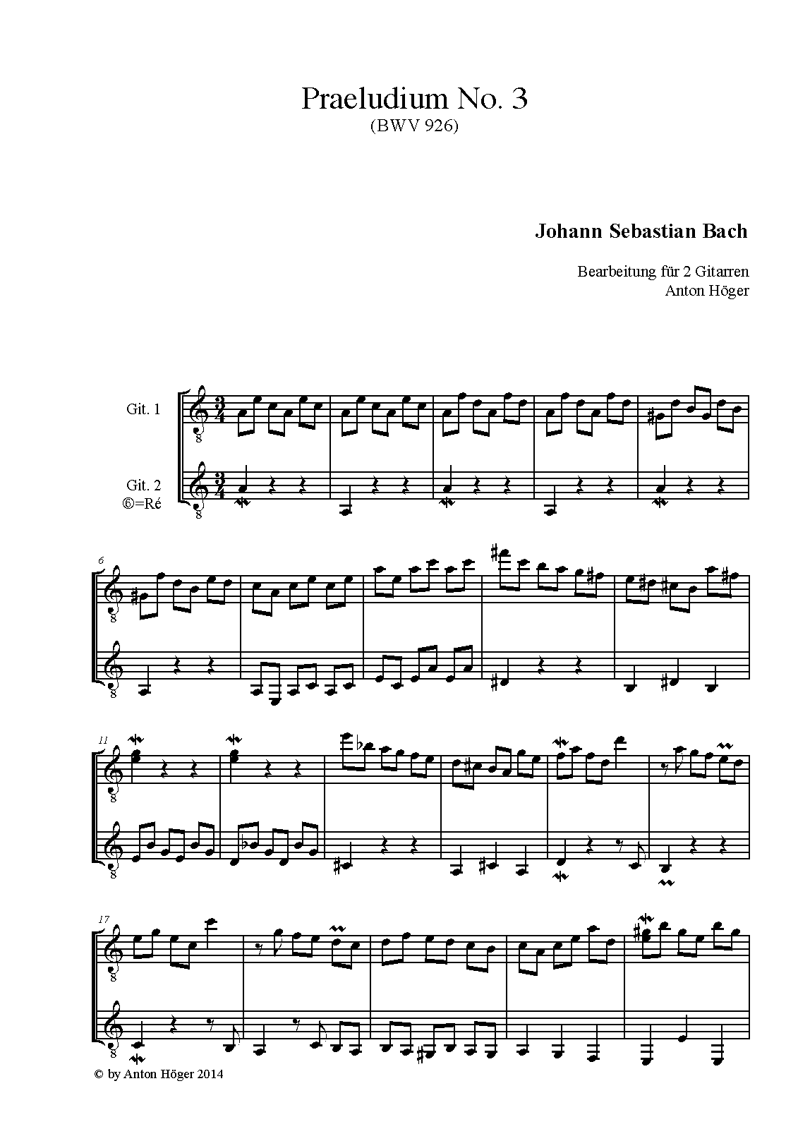Opus/Catalogue NumberOp./Cat. No. BWV 926 ; BC L 58