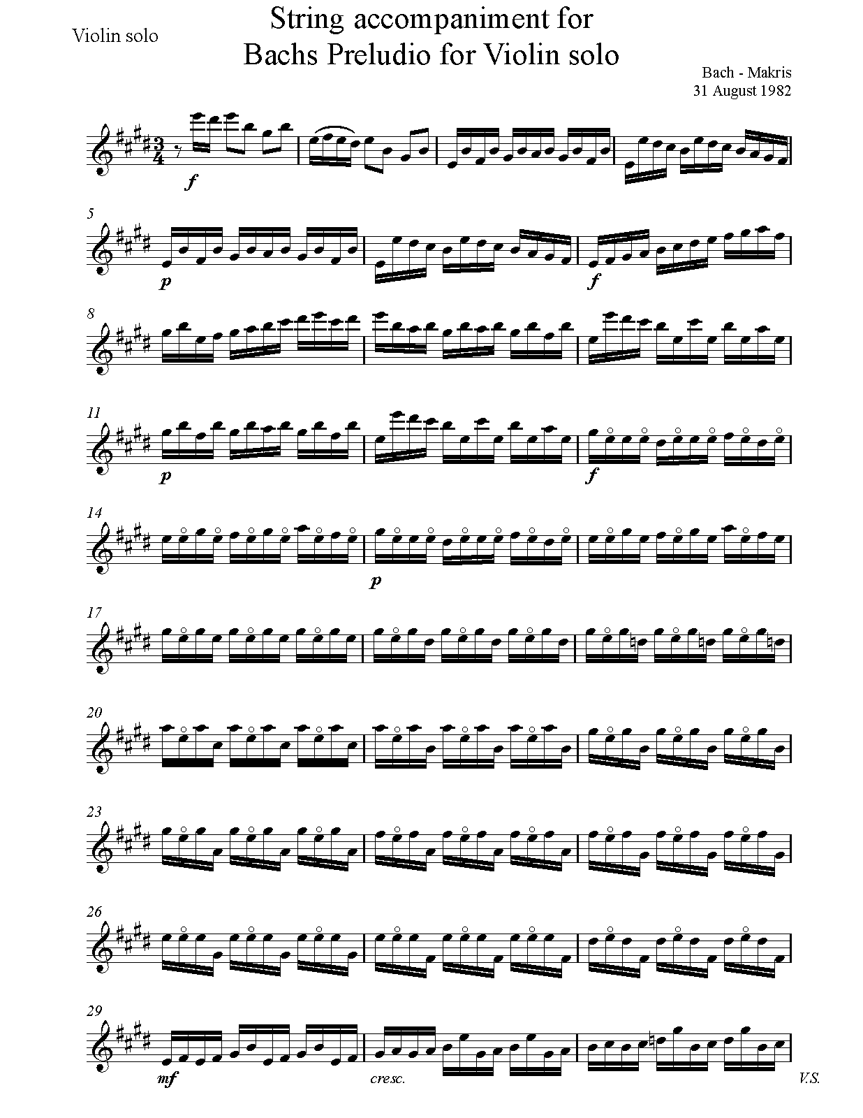 | Preludio for Violins and Orchestra after Partita No. 3 in E major for Solo Violin by J.S. Bach
