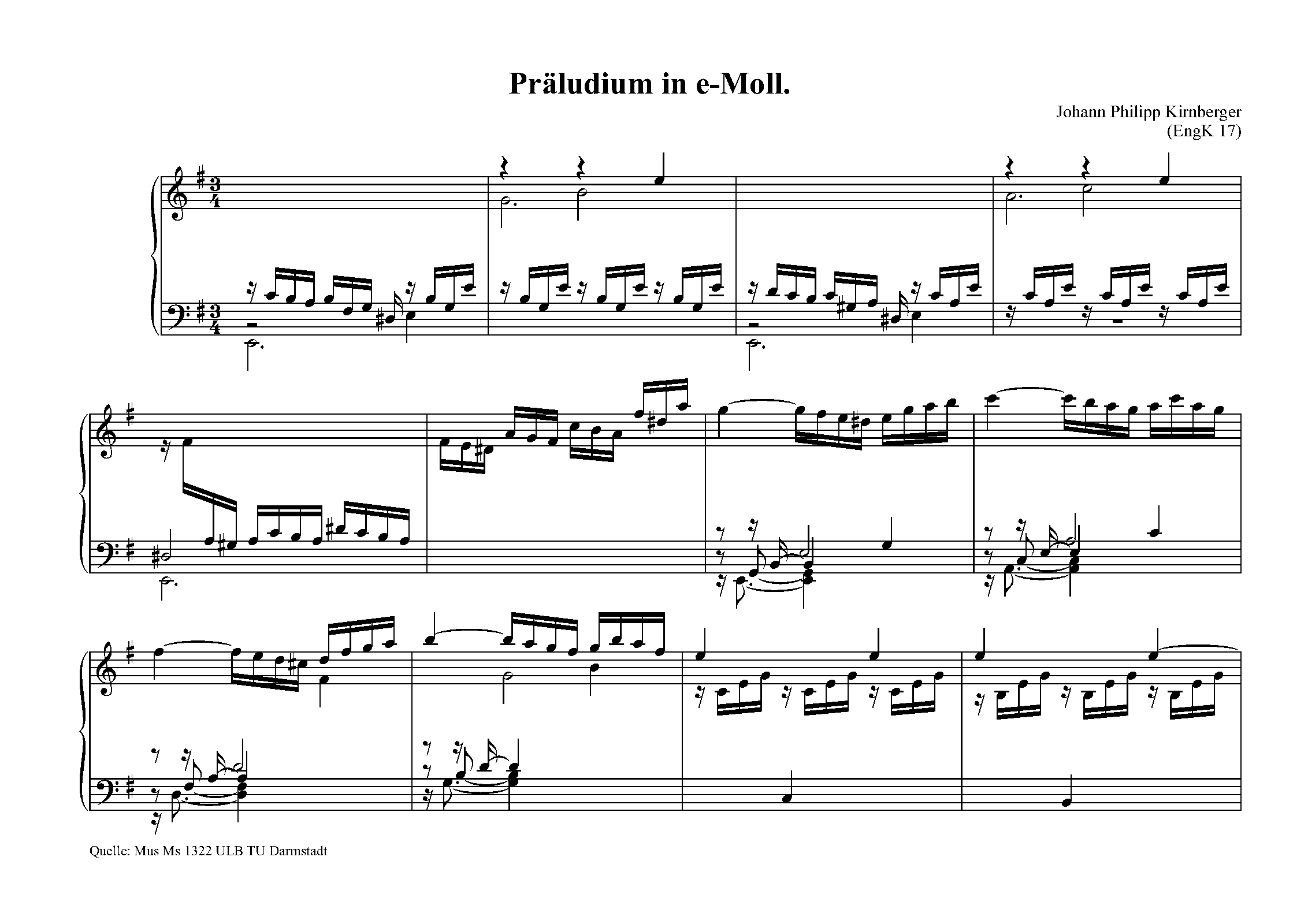 | Extra Information | Prelude only: Clavierstücke mit einem practischen Unterricht für Anfänger und Geübtere, von Friedrich Wilhelm Marpurg. Dritte Sammlung 1763 p.18