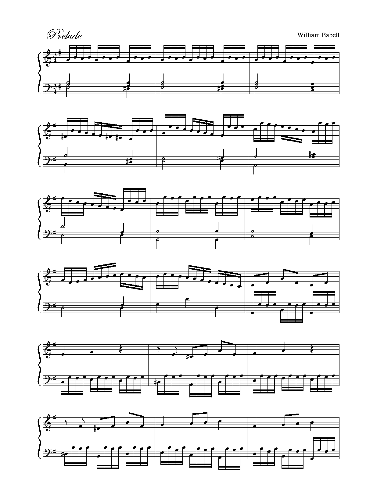 This prelude by Babell comes from the Coke/Handel manuscripts and is used to introduce movements arranged by Babell much like his similar works in "Suits of the Most Celebrated Lessons," of 1714.