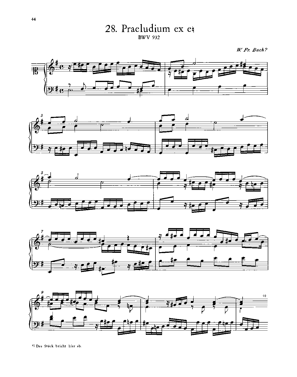 This work was formerly attributed to Johann Sebastian Bach as BWV 932