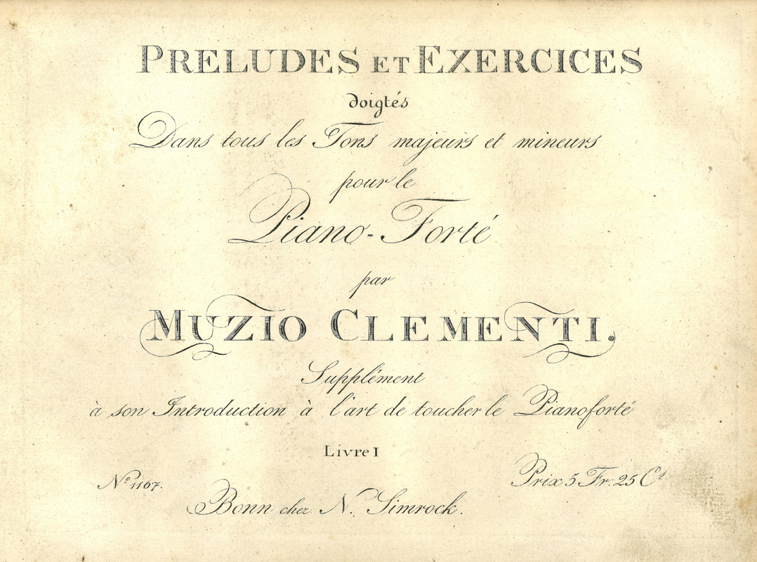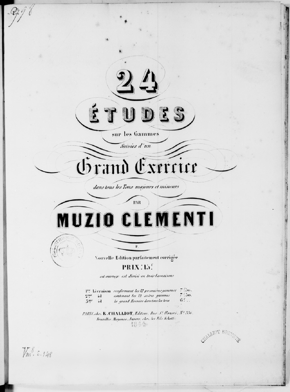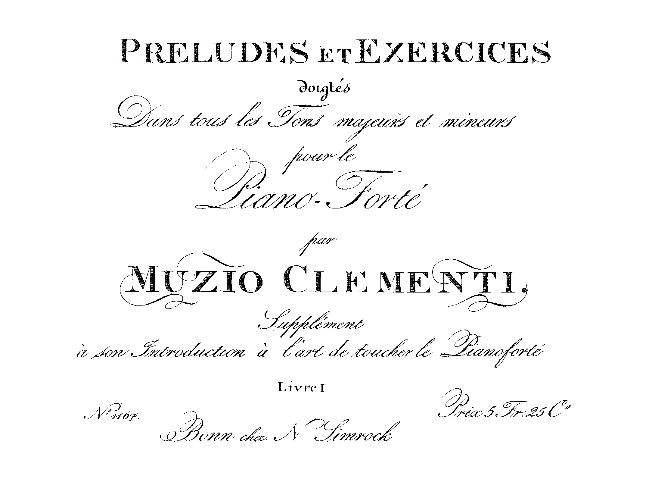 Misc. Notes Nouvelle édition des Préludes et Exercices dans tous les tons majeurs et mineurs de M. Clementi, 1752-1832, revus et doigtés par C. Eschmann-Dumur. Adoptés à l'Institut de Musique de Lausanne.