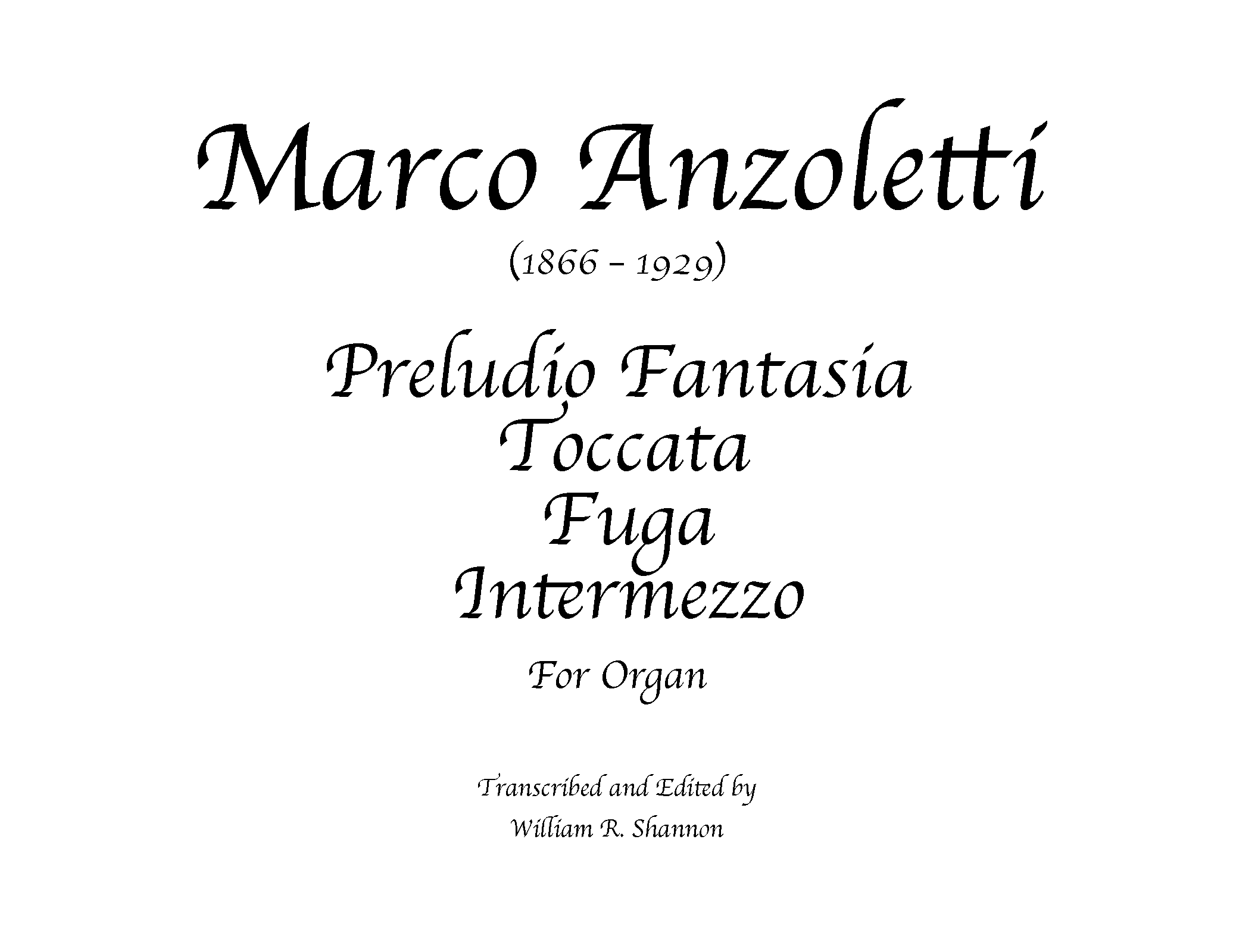 | Alternative. Title | Preludio - Toccata - Fuga - Intermezzo |