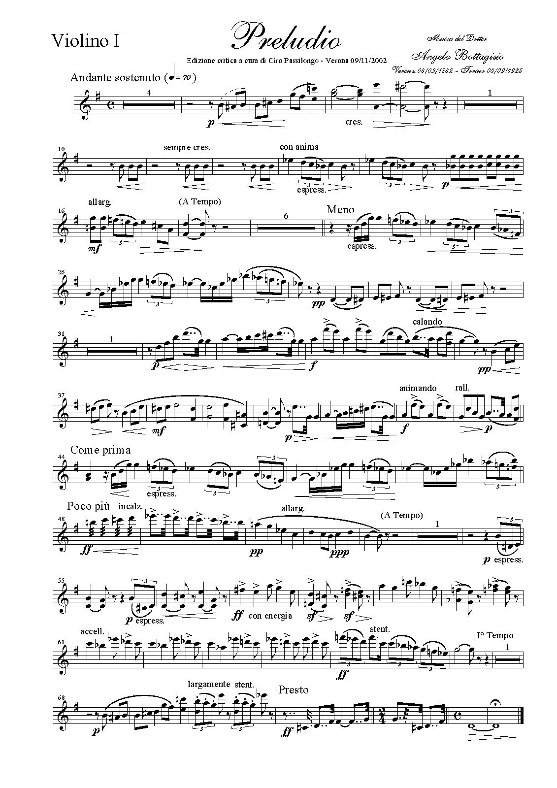 | Work Title | Preludio per Tre Violini, Viola, Violoncello e Basso |