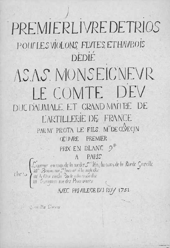 Premier livre de trios pour les violons, flutes et haubois ... Oeuvre Premier