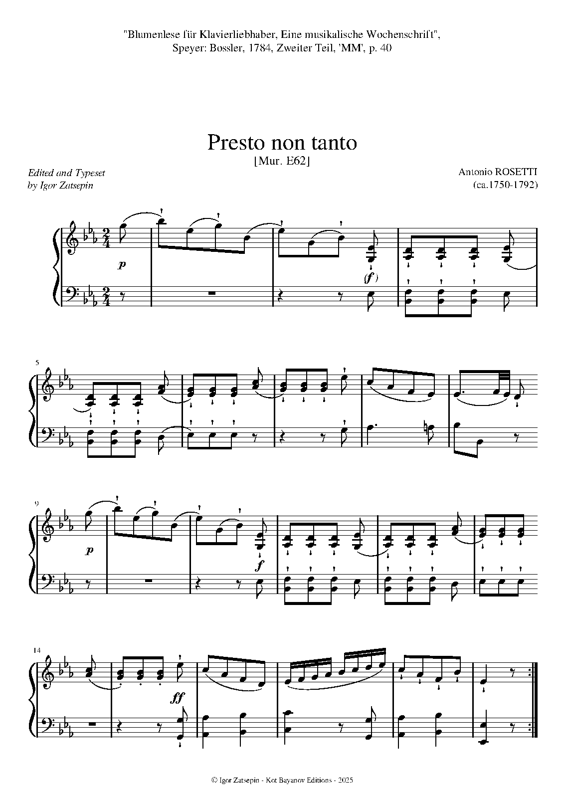 | Work Title | Presto non tanto in E-flat major |