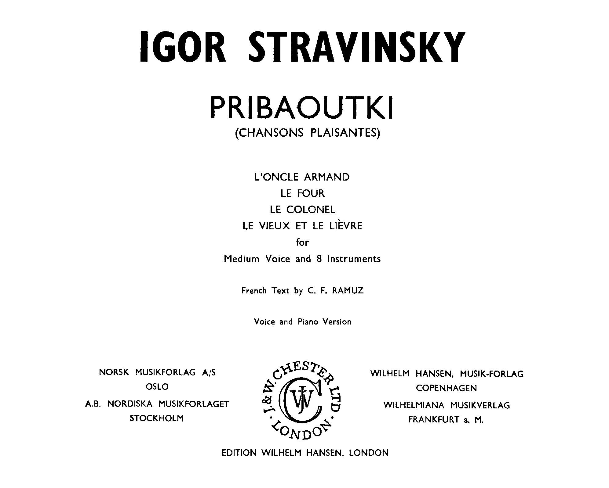 | Genre Categories | Songs; For voice, flute, oboe, clarinet, bassoon, violin, viola, cello, double bass; Scores featuring the voice; |