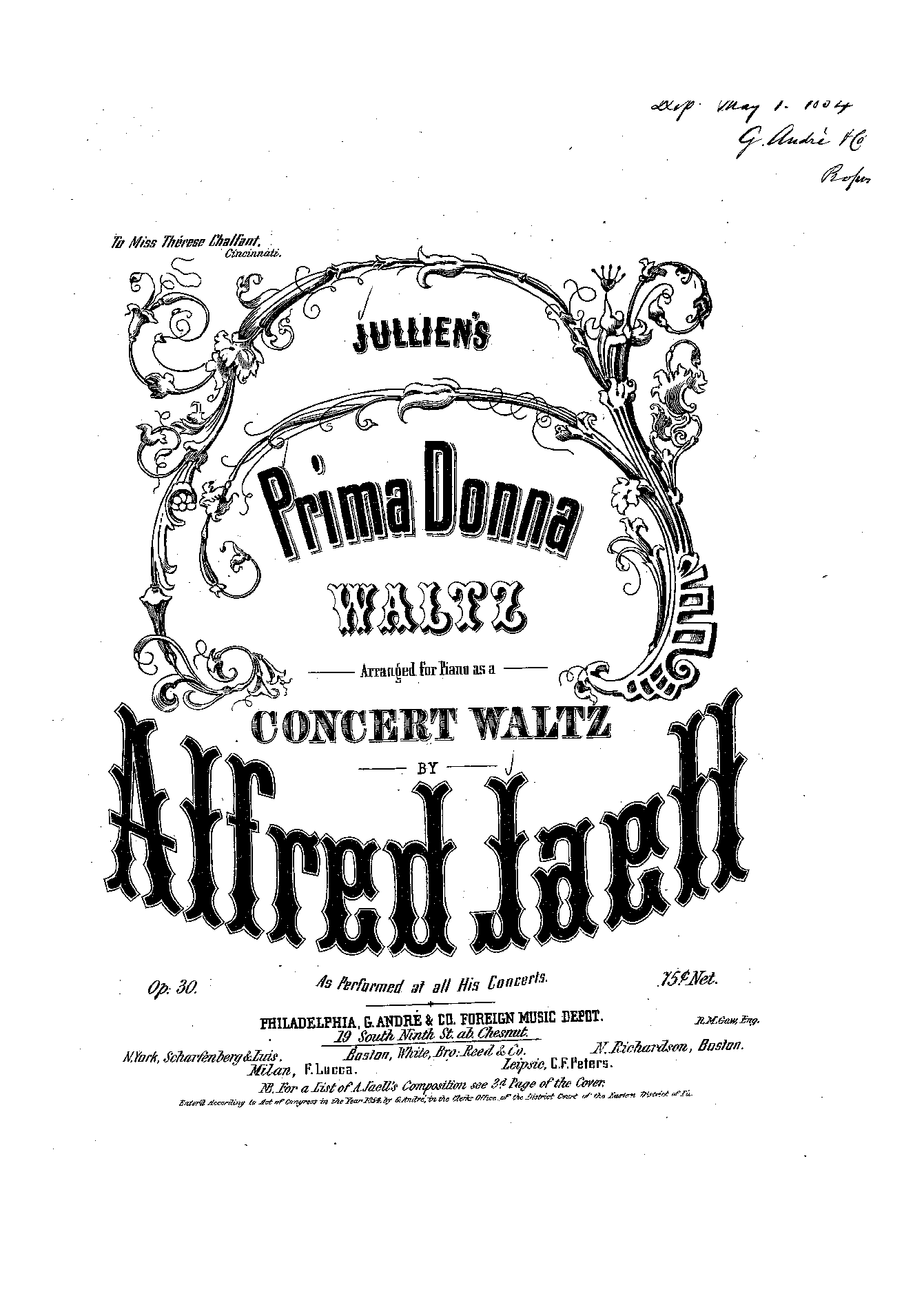 | Alternative. Title | Julien's Prima Donna Waltz arranged for Piano as a Concert Waltz, Op. 30 |
