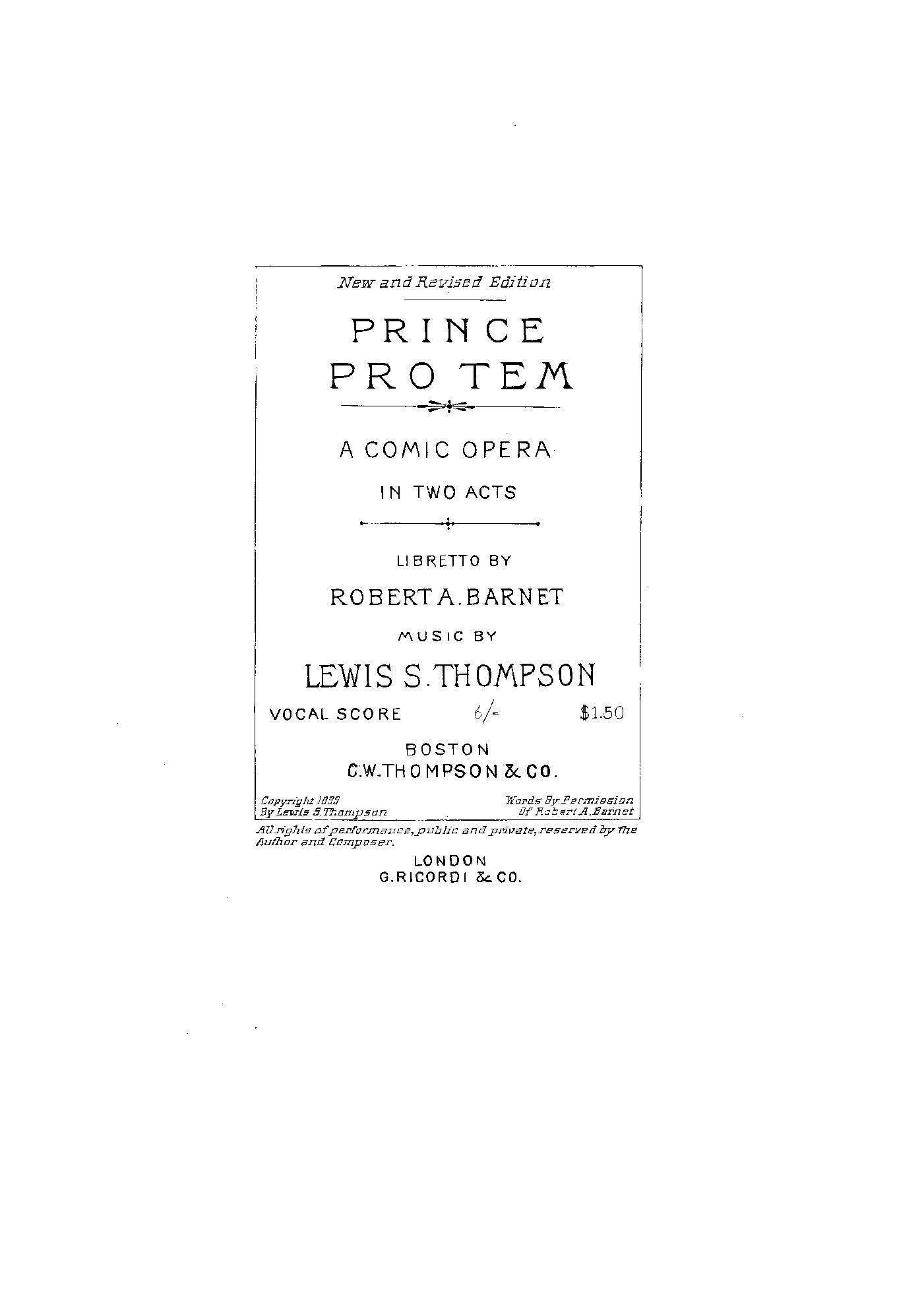 | Librettist | Robert Ayres Barnet (1850-1933) |
