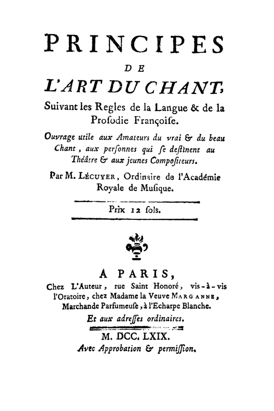 | Alternative. Title | Principes de l'Art du Chant, Suivant les Regles de la Langue & de la Prosodie Françoise. Ouvrage utile aux Amateurs du vrai & du beau Chant, aux personnes que se destinent au Théâtre & aux jeunes Compositeurs |