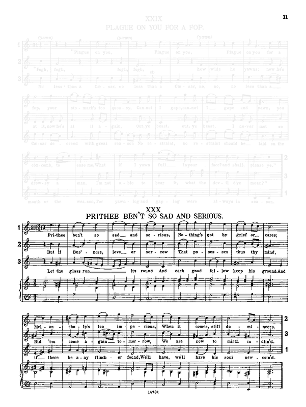 | Genre Categories | Catches; For 3 voices, continuo; For voices with continuo; |