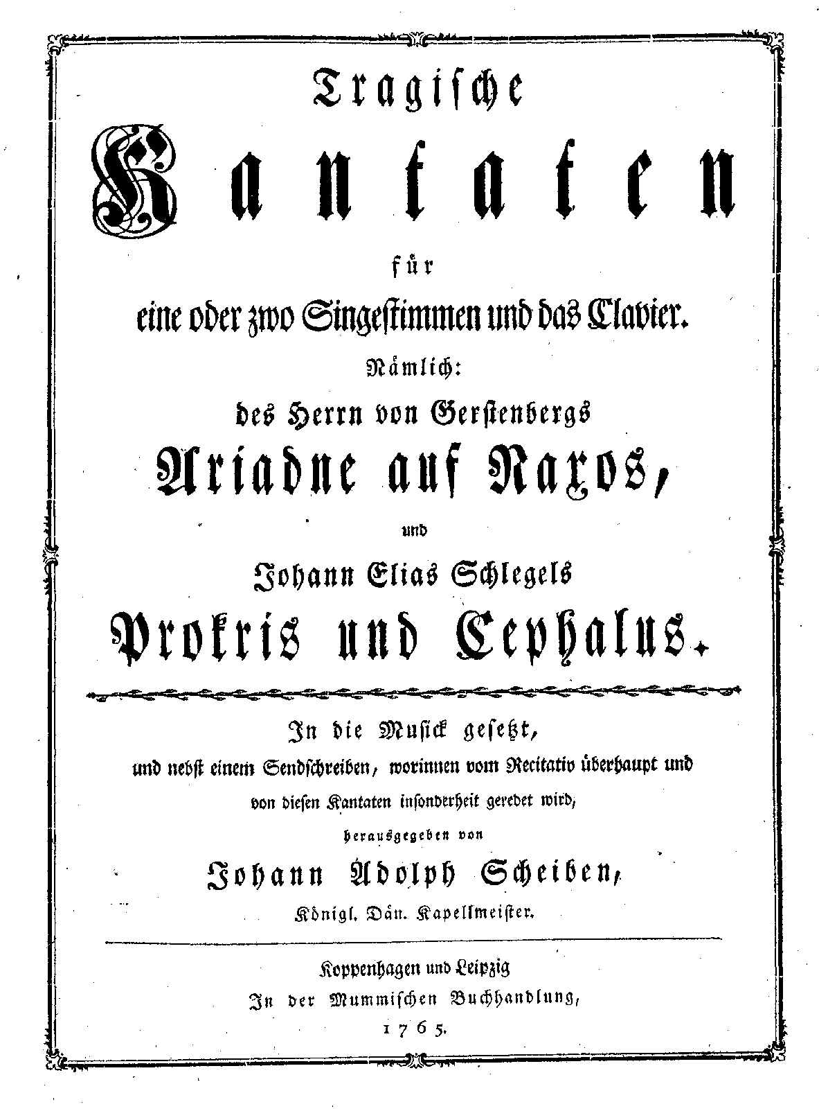 | Alternative. Title | Cephalus, Cantate. Verf: von J. E. Schlegel u. componirt von Scheiben 1747 |