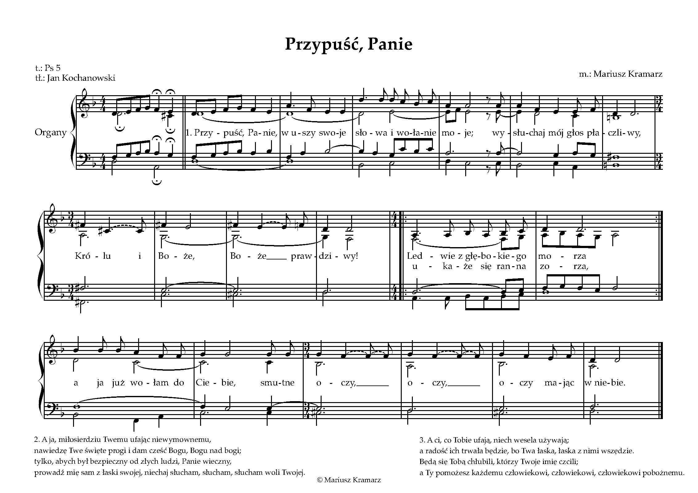 | Librettist | Psalm V, versified by Jan Kochanowski (1530–1584) |
