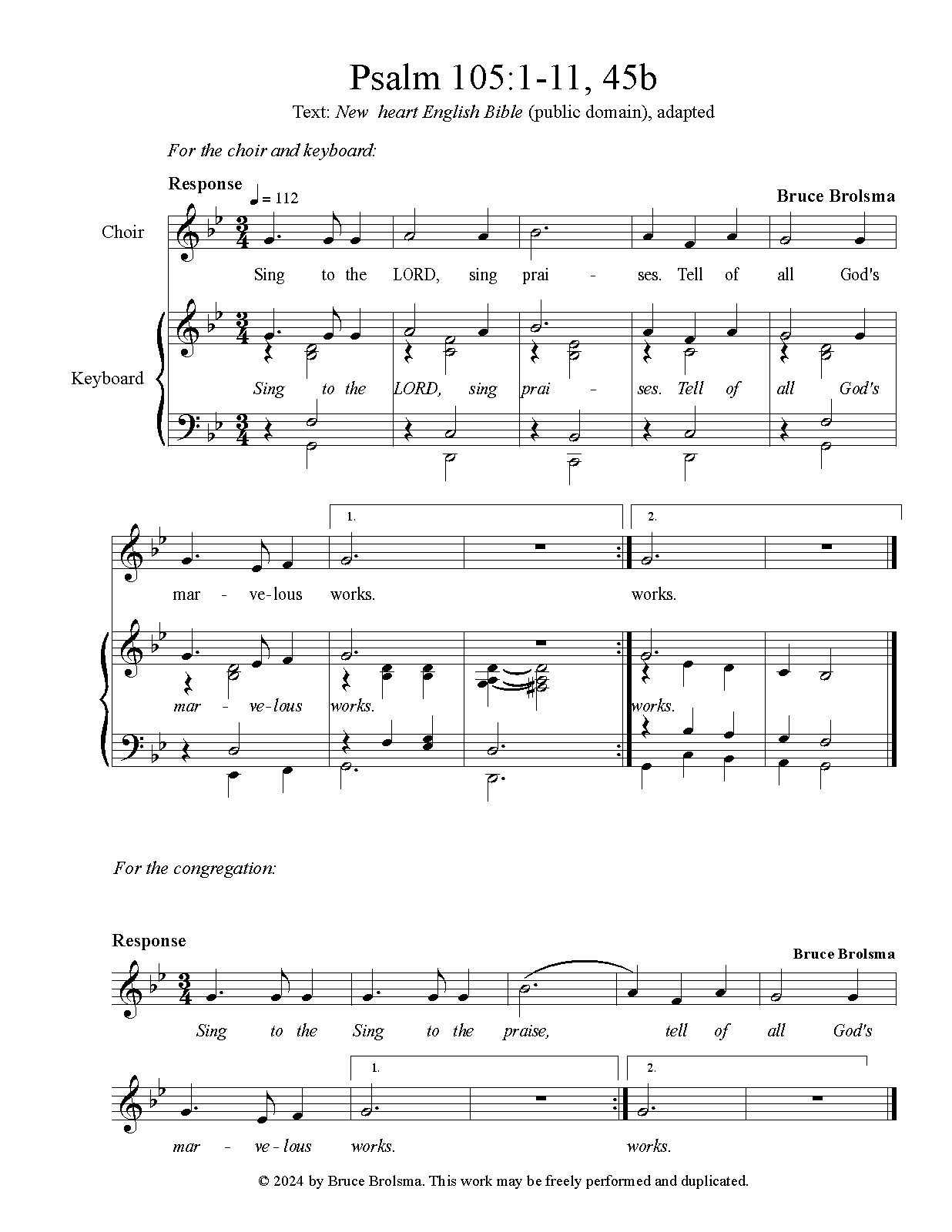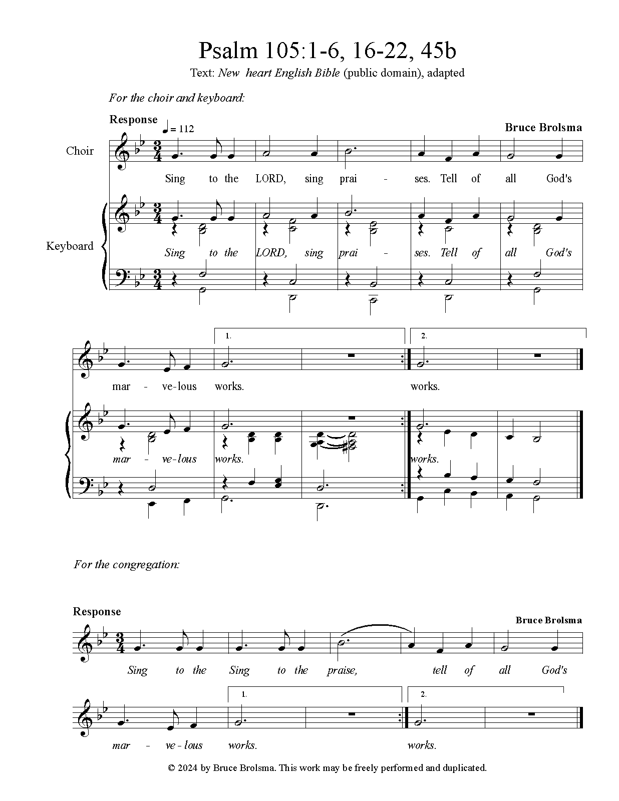 Response and verses may be performed by a choir or the congregation. Music and words may be accessed by the engraving file (MusicXML) or via screenshots of the PDF file. |