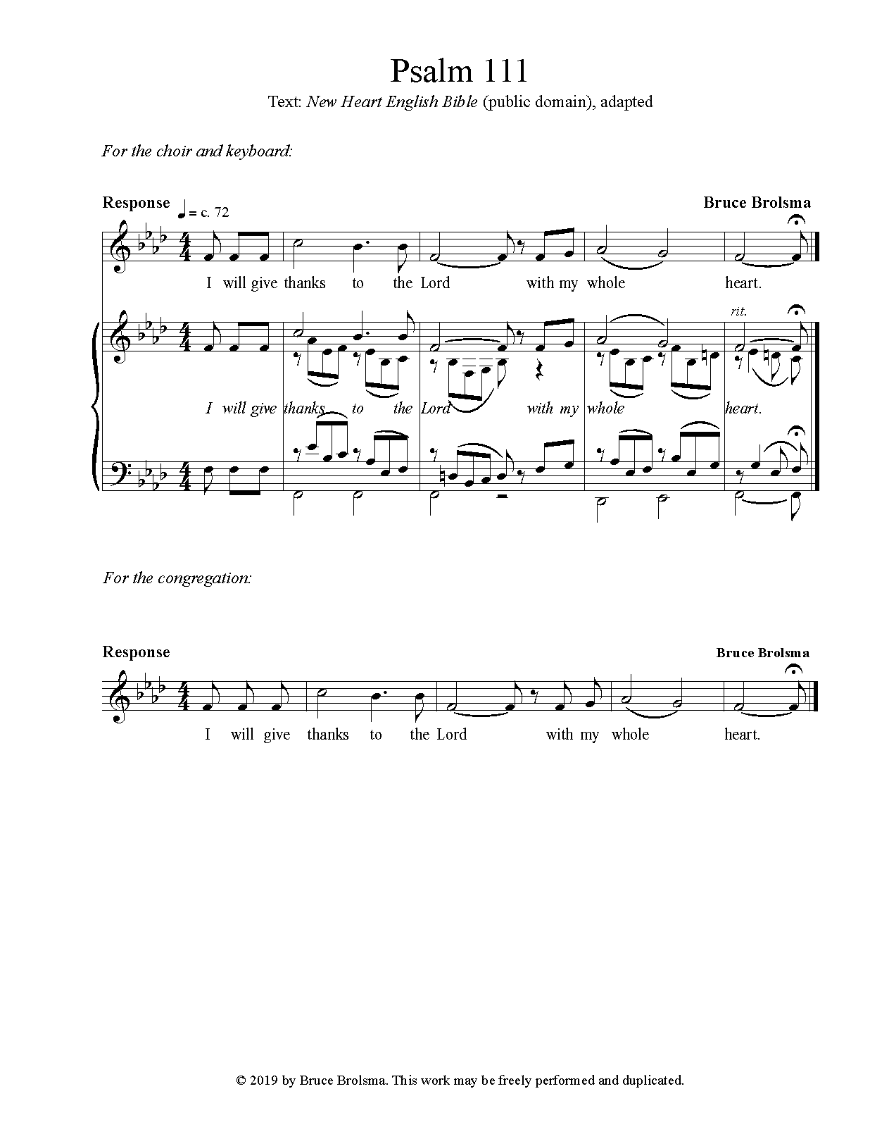 | Librettist | Psalm CXI New Heart English Bible (public domain), adapted |