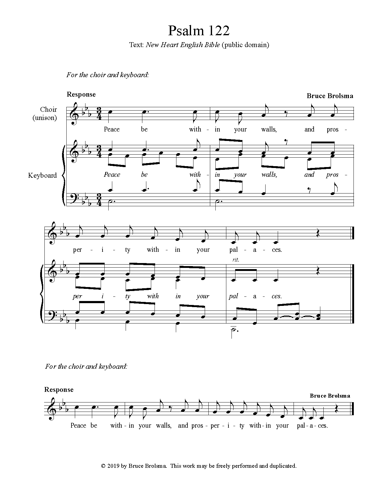 Response and verses may be performed by a choir or the congregation. Music and words may be accessed by the engraving file (MusicXML) or via screenshots of the PDF file. |