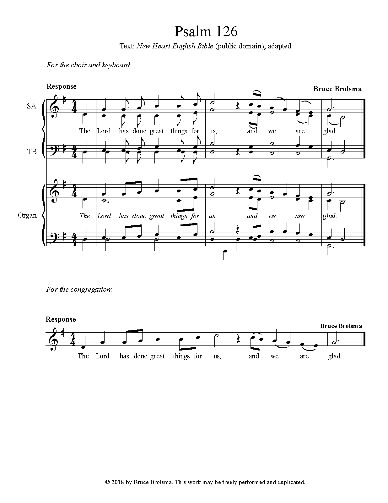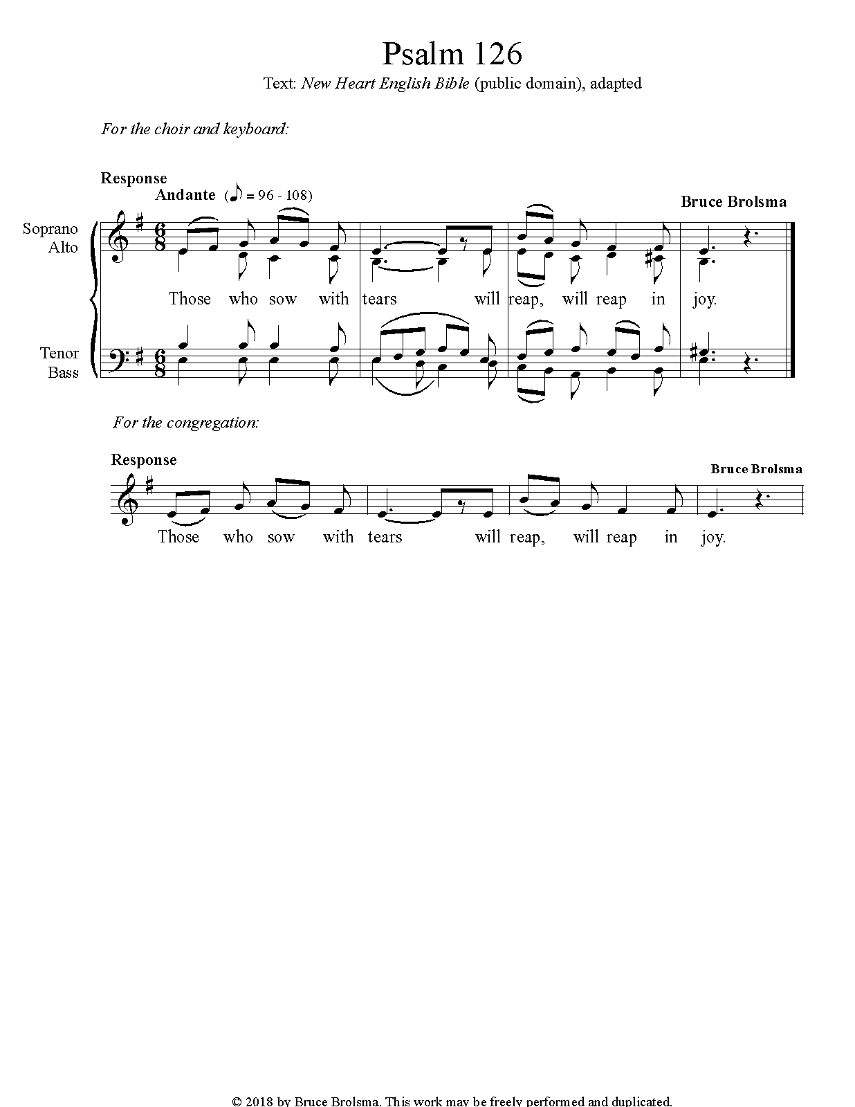 Response and verses may be performed by a choir or the congregation. Music and words may be accessed by the engraving file (MusicXML) or via screenshots of the PDF file. |