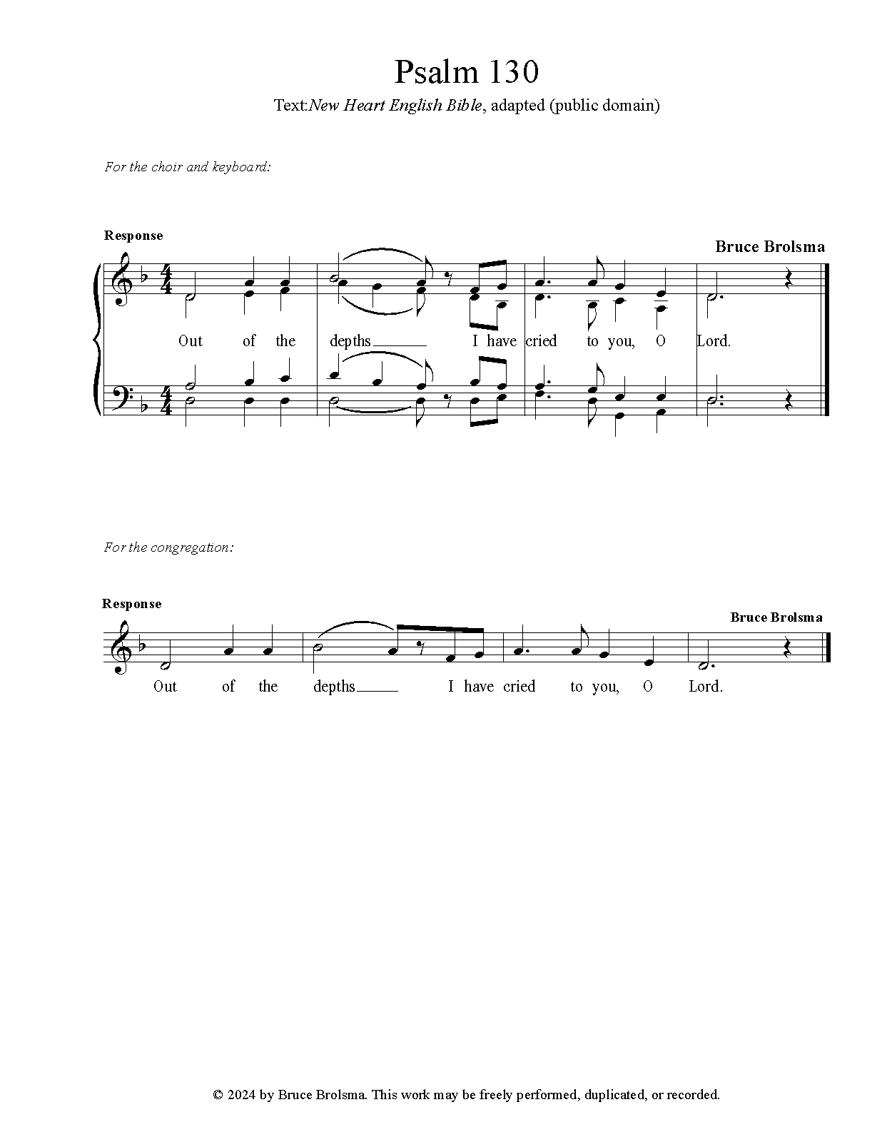 | Librettist | Psalm CXXX - New Heart English Bible (public domain, adapted) |