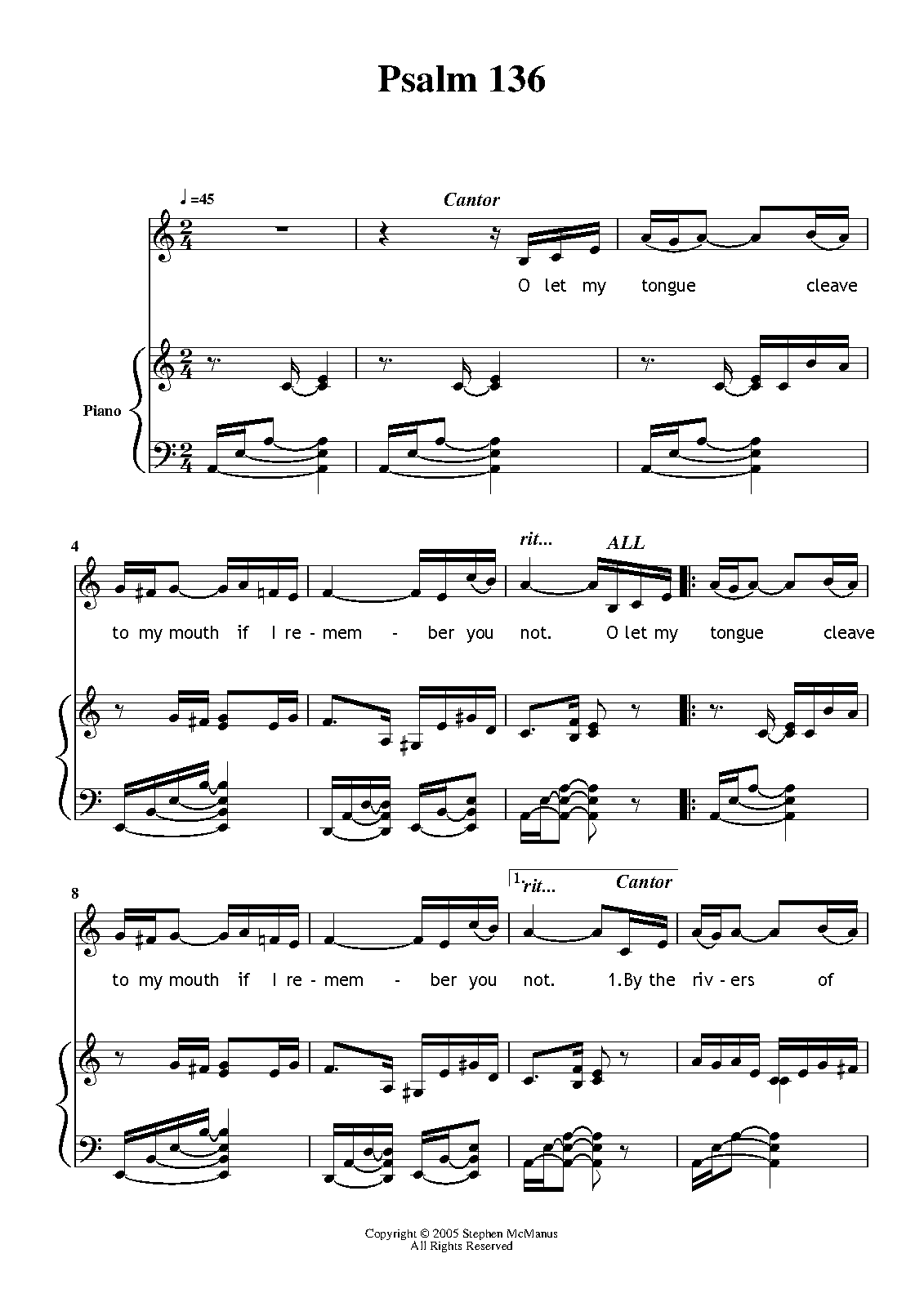 | Instrumentation | voice (cantor), unison chorus, piano |