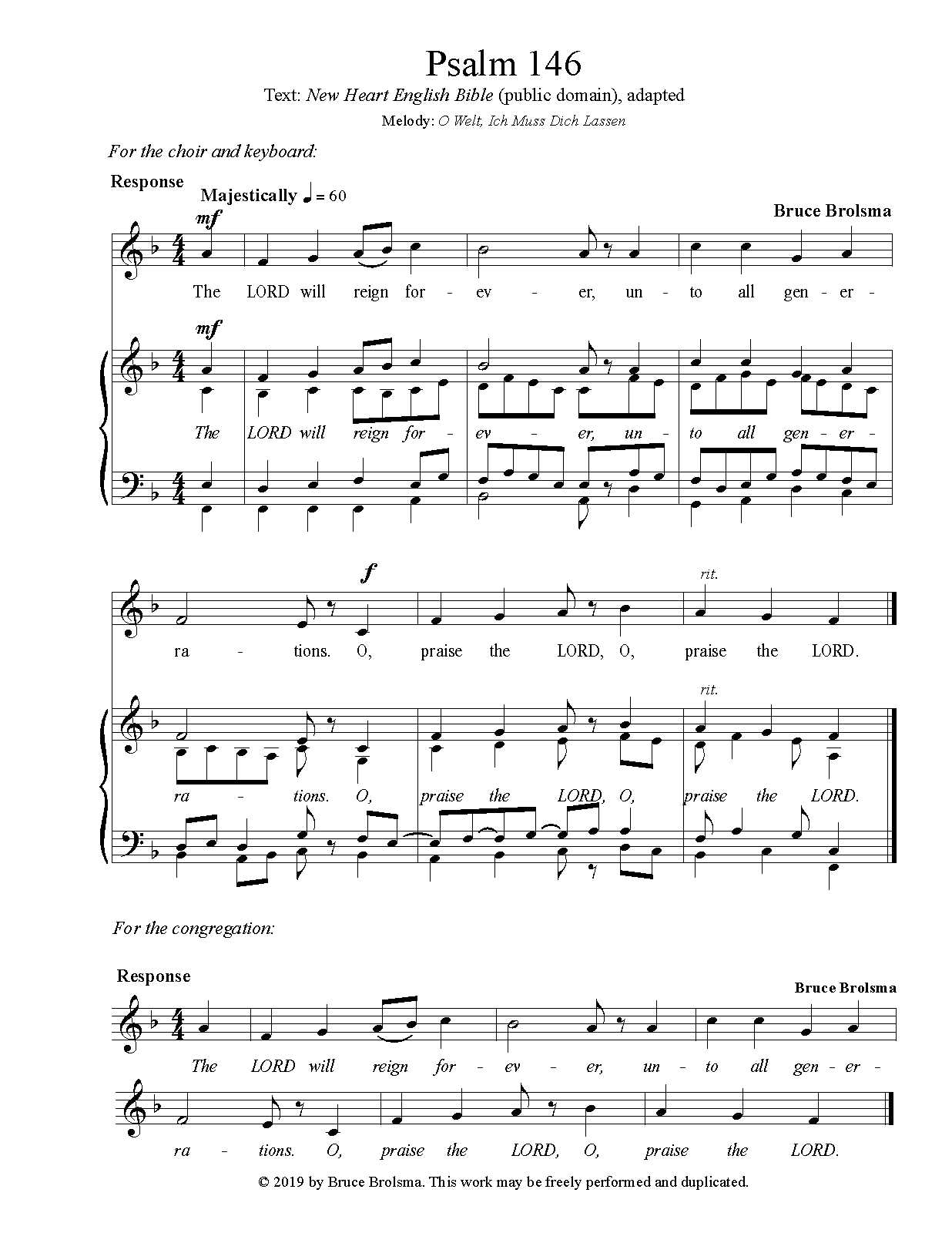 | Librettist | Psalm CXLVI New Heart English Bible (public domain), adapted |