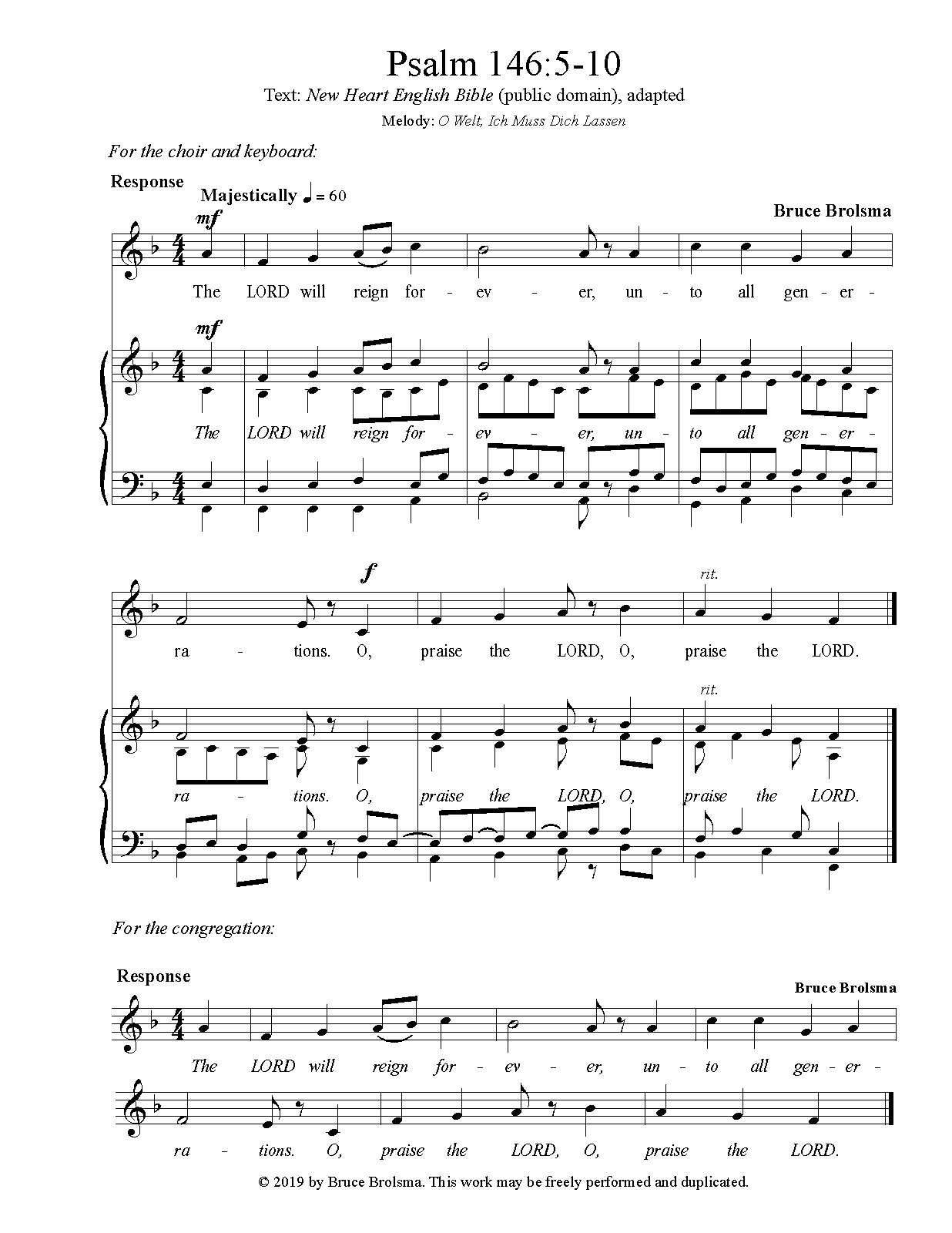 Response and verses may be performed by a choir or the congregation. Music and words may be accessed by the engraving file (MusicXML) or via screenshots of the PDF file. |