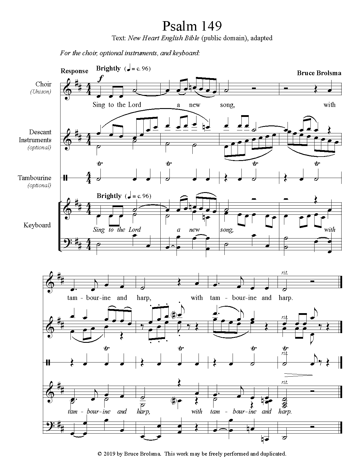 Response and verses may be performed by a choir or the congregation. Music and words may be accessed by the engraving file (MusicXML) or via screenshots of the PDF.
