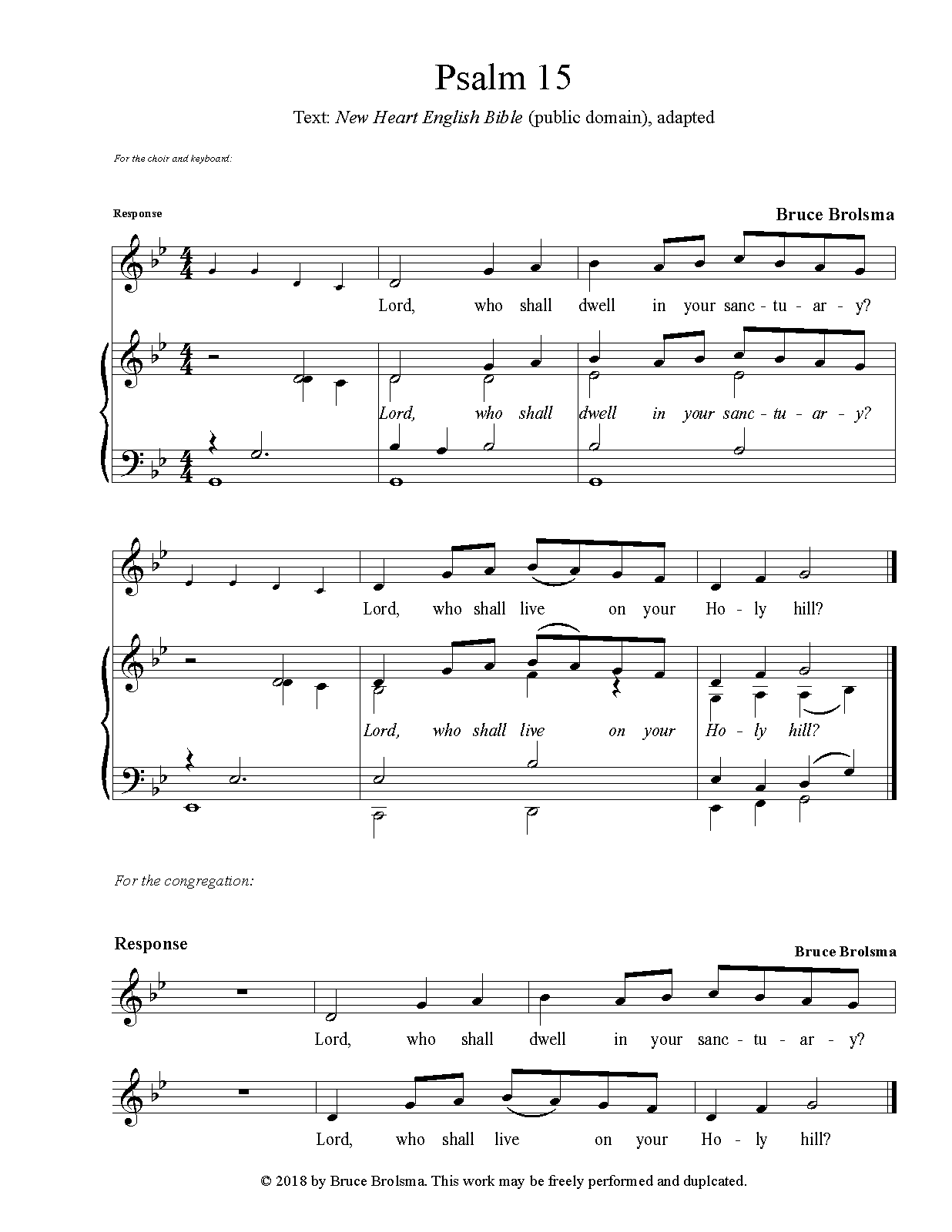 | Librettist | Psalm XV New Heart English Bible (public domain), adapted |