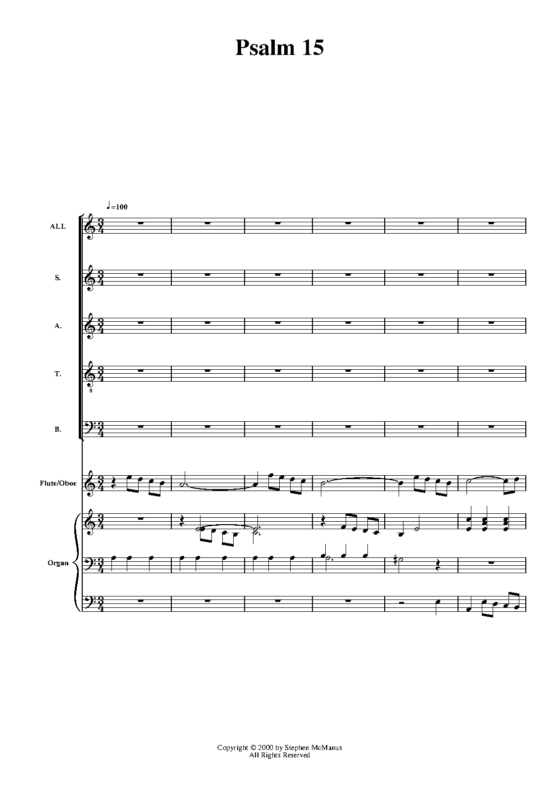 | Genre Categories | Psalms; Religious works; For unison chorus, mixed chorus, flute, organ; |