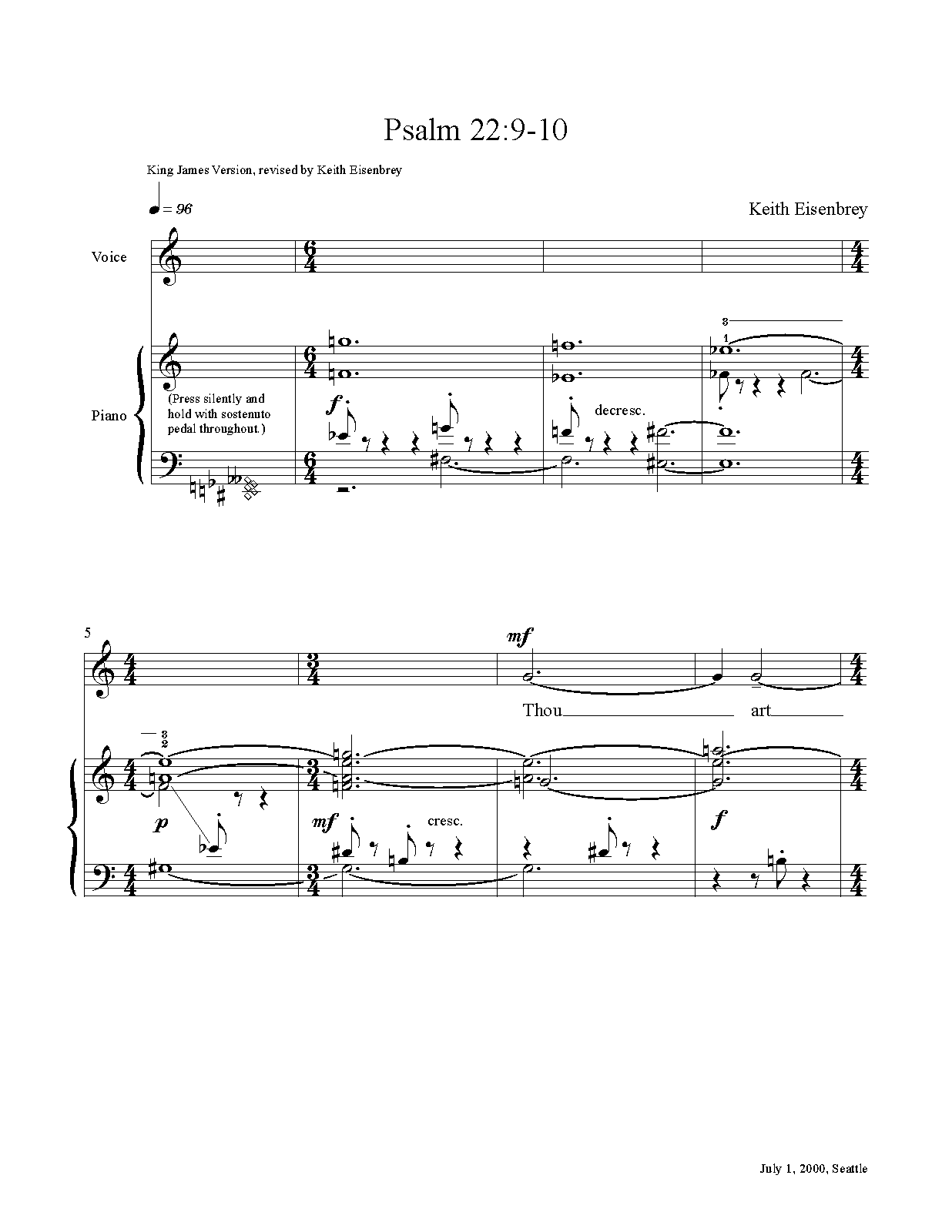 | Librettist | Psalm XXII King James Version, revised by Keith Eisenbrey |