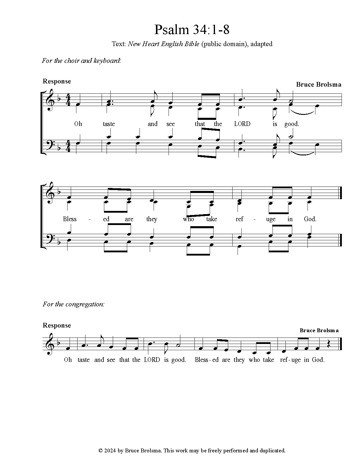 | Librettist | Psalm XXXIV - New Heart English Bible (public domain), adapted |