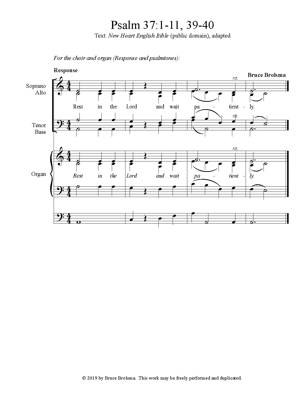 Response and verses may be performed by a choir and/or the congregation. Music and words may be accessed by the engraving file (MusicXML) or via screenshots of the PDF file. |