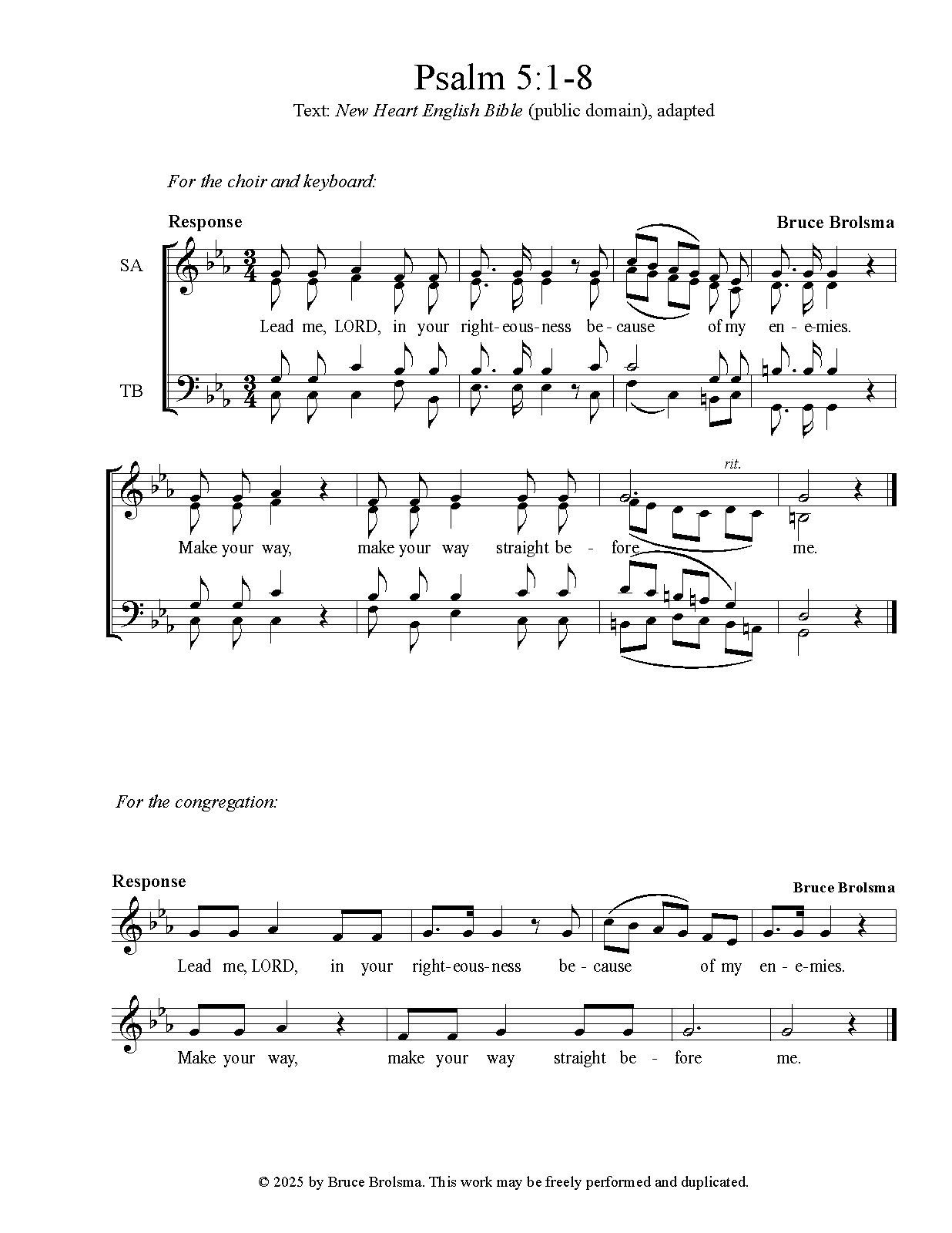 Response and verses may be performed by a choir and/or the congregation. Music and words may be accessed by the engraving file (MusicXML) or via screenshots of the PDF file.