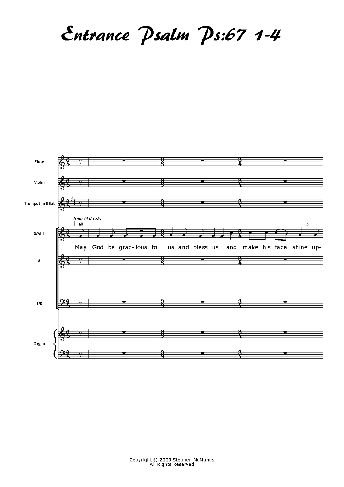 Mixed chorus (SATB), flute, trumpet, violin, organ