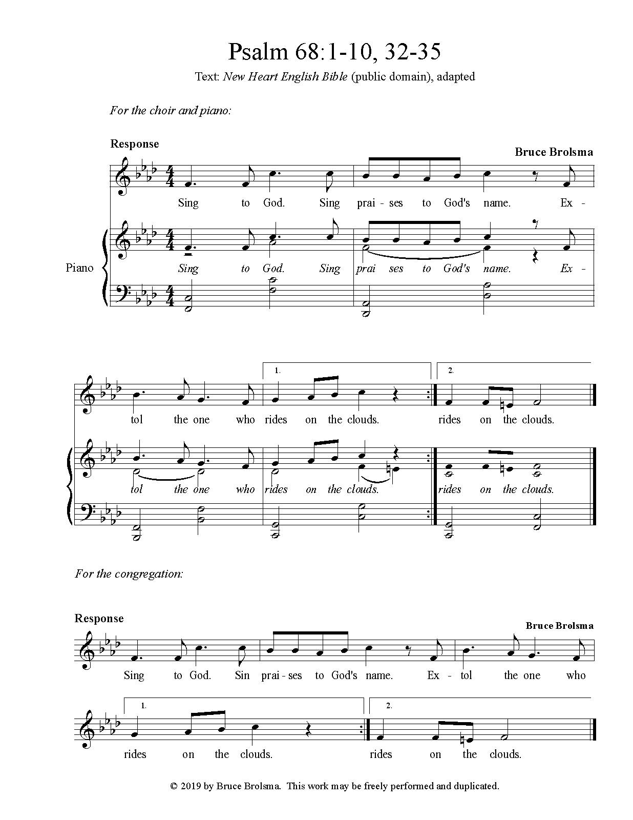 Response and verses may be performed by a choir or the congregation. Music and words may be accessed by the engraving file (MusicXML) or via screenshots of the PDF file. |