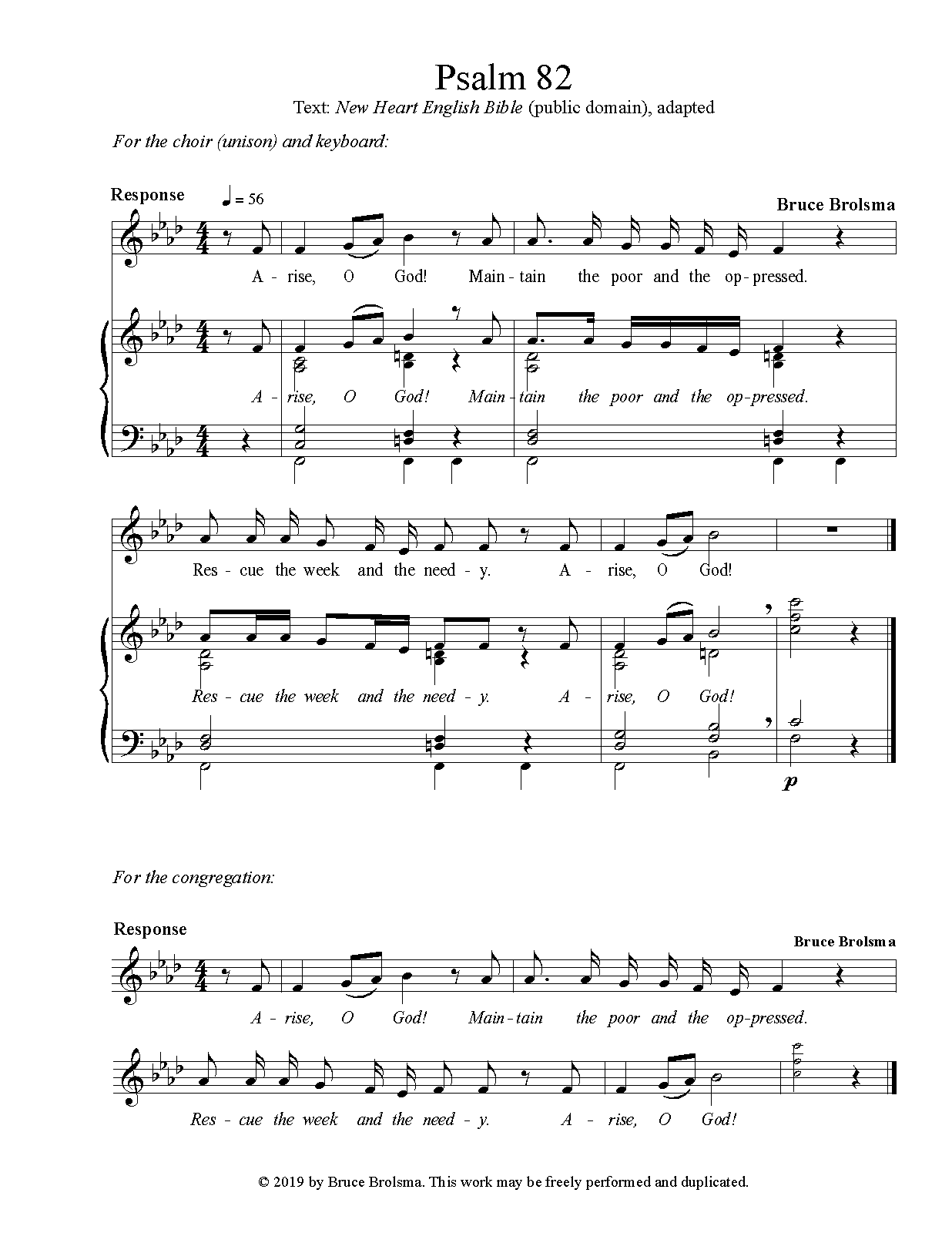 Response and verses may be performed by a choir or the congregation. Music and words may be accessed by the engraving file (MusicXML) or via screenshots of the PDF file. |