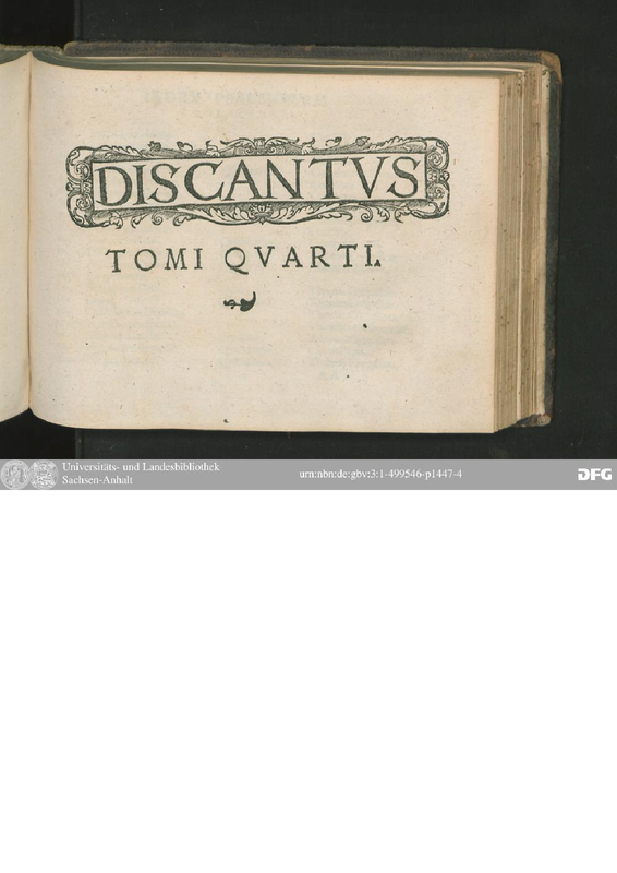 | Alternative. Title | PSALMORVM SELECTORVM A' PRAESTANTISSIMIS HVIVS NOSTRI TEMPORIS IN ARTE MVSICA ARTIFICIBVS IN HARMONIAS QVATVOR, QVINQVE, ET SEX VOCVM REDACTORVM TOMVS PRIMVS (-QVARTVS), QVI CVM FERÈ, VT RELIQVI tres, nouos, & hactenus in publico non conspectos uel auditos Psalmos contineat, Recens natus recte dici potest, [Stimmen], Bd.: 4, TOMVS QVARTVS PSALMORVM SELECTORVM, QVATVOR ET PLVRIVM VOCVM, Noribergae, 1554 |