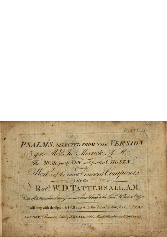 Psalms, selected from the version of the Revd. Jas. Merrick, A. M. The Music partly New, and partly Chosen, from the Works of the most Eminent Composers, By the Revd. W. D. Tattersall, A. M.