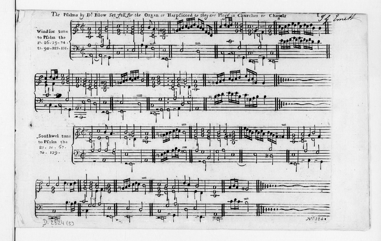 The Psalms by Dr. Blow Set full for the Organ or Harpsichord as they are Play'd in Churches or Chapels