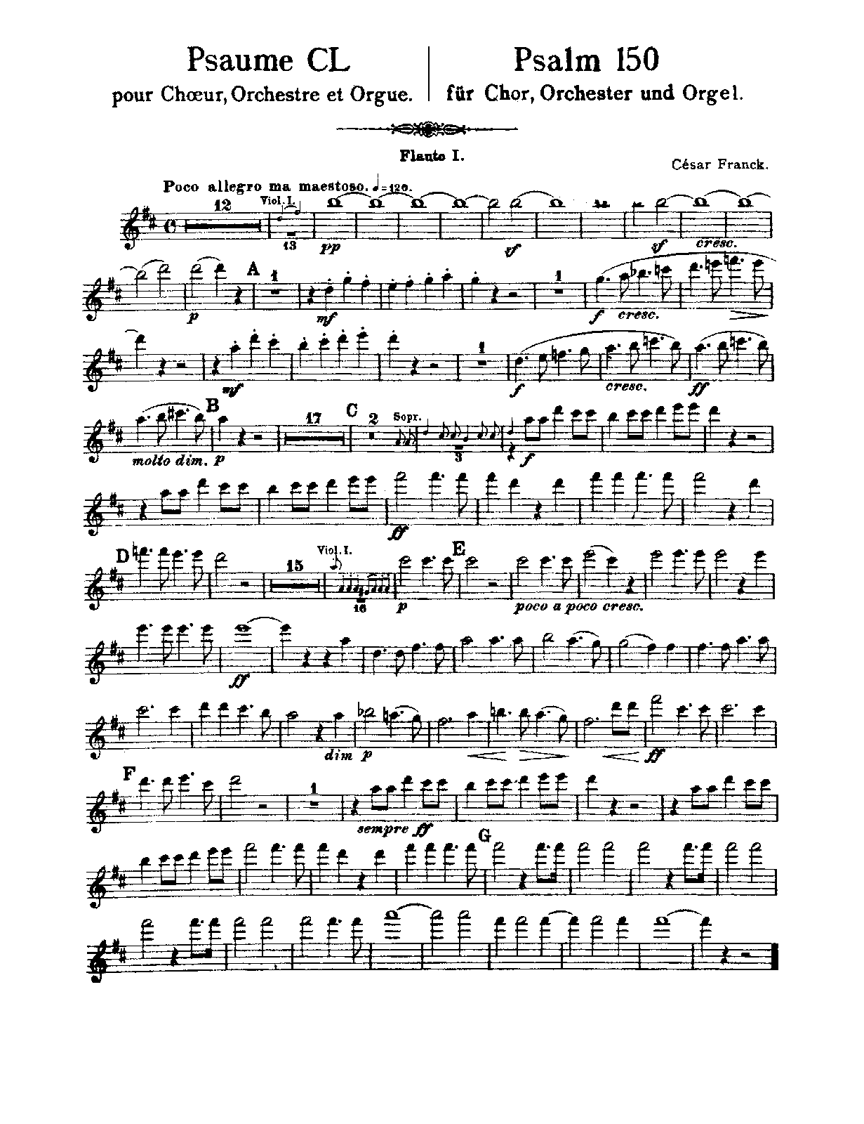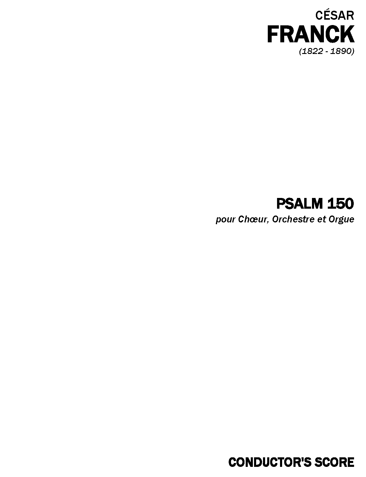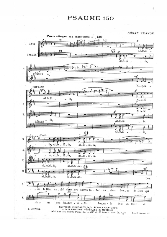 | Extra Information | Posthumously published, but composed in 1883 for students according to R.J. Stove (César Franck: His Life and Times, 2011, p.208) (unless that's a different setting of Psalm 150?) |
