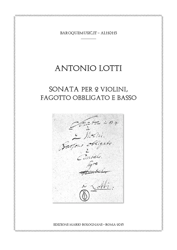 | Genre Categories | Sonatas; For bassoon, 2 violins, continuo; Scores featuring the violin; |
