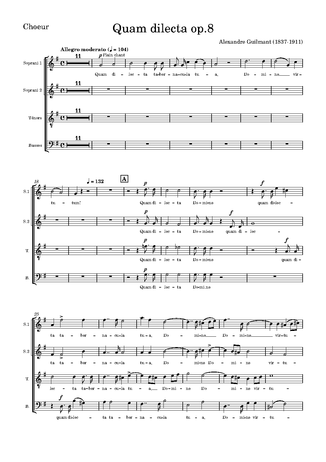| Alternative. Title | Quam dilecta (Psaume 83) à Quatre Voix Solos et Choeurs avec accompagnement d'orchestre ou d'orgue |